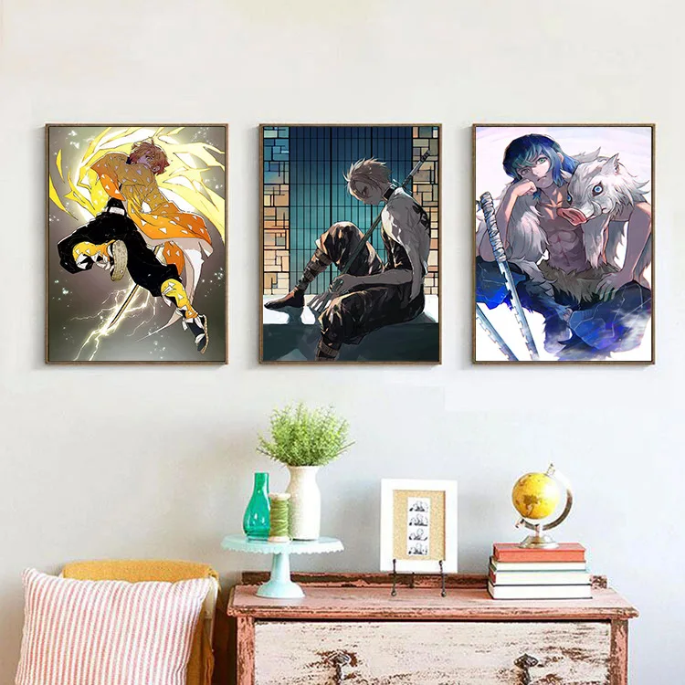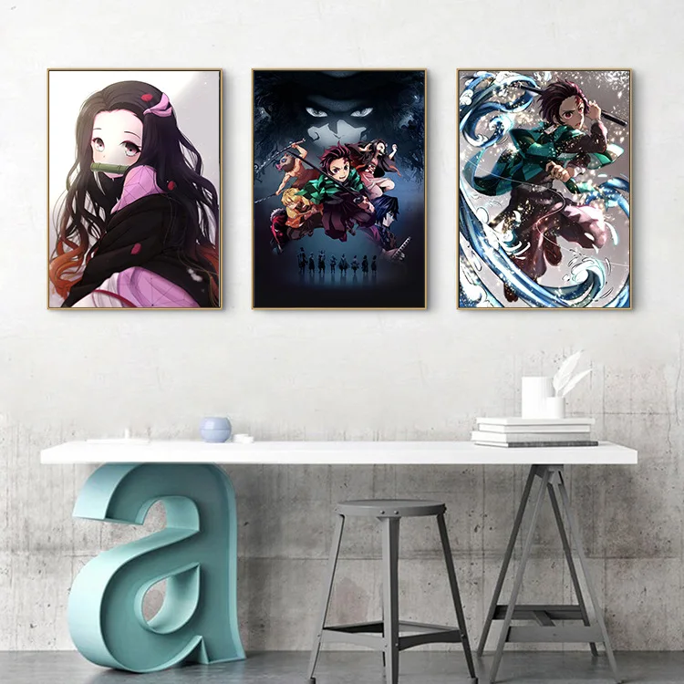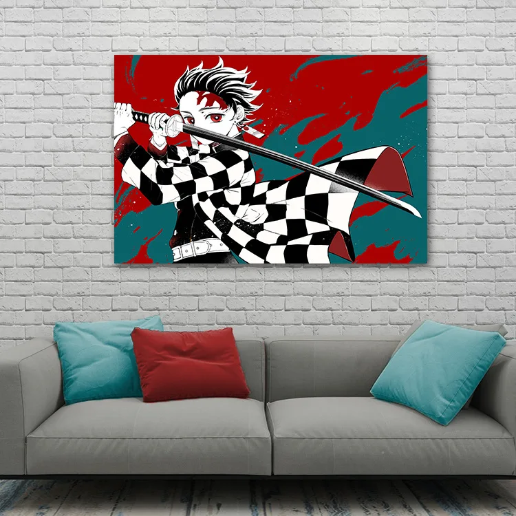 Демон убийца: Kimetsu без Yaiba Tanjirou Nezuko Аниме Манга Холст Картина стене плакат картинки для Гостиная украшение дома