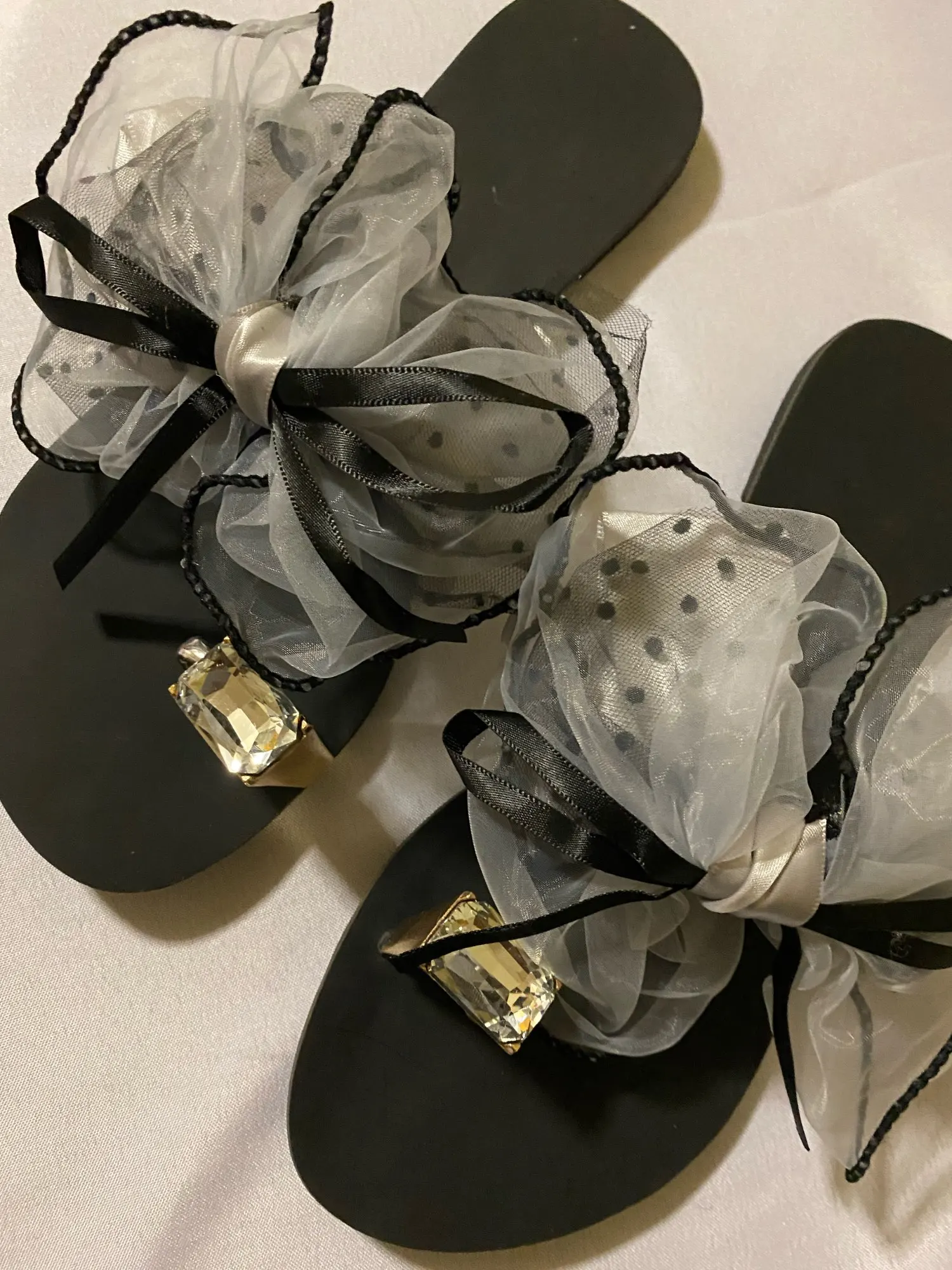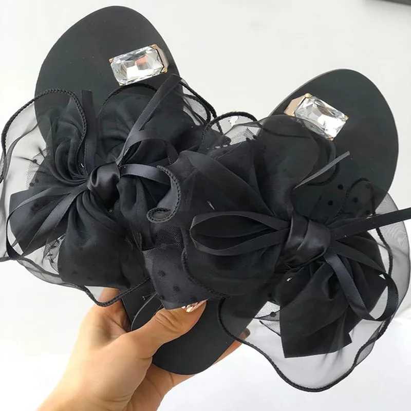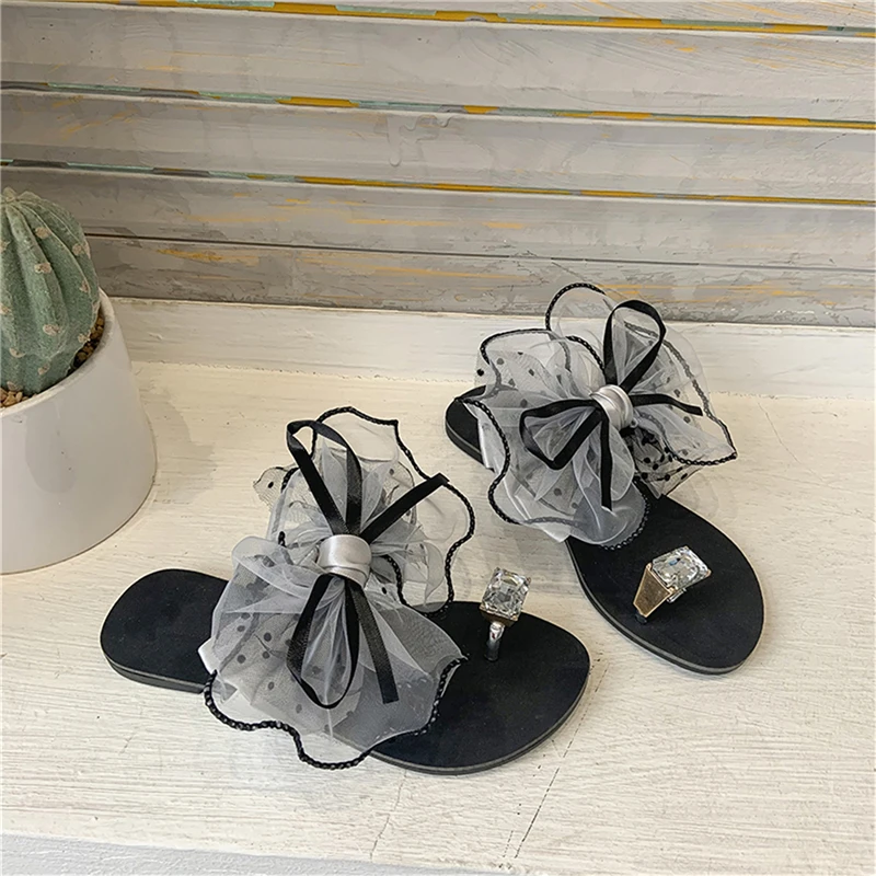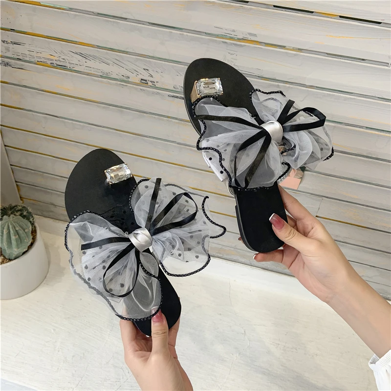 Летние шлепанцы с бантиком, сандалии на плоской подошве, женские сабо на платформе, повседневные модные сандалии, пляжные шлепанцы, сетчатые пляжные шлепанцы