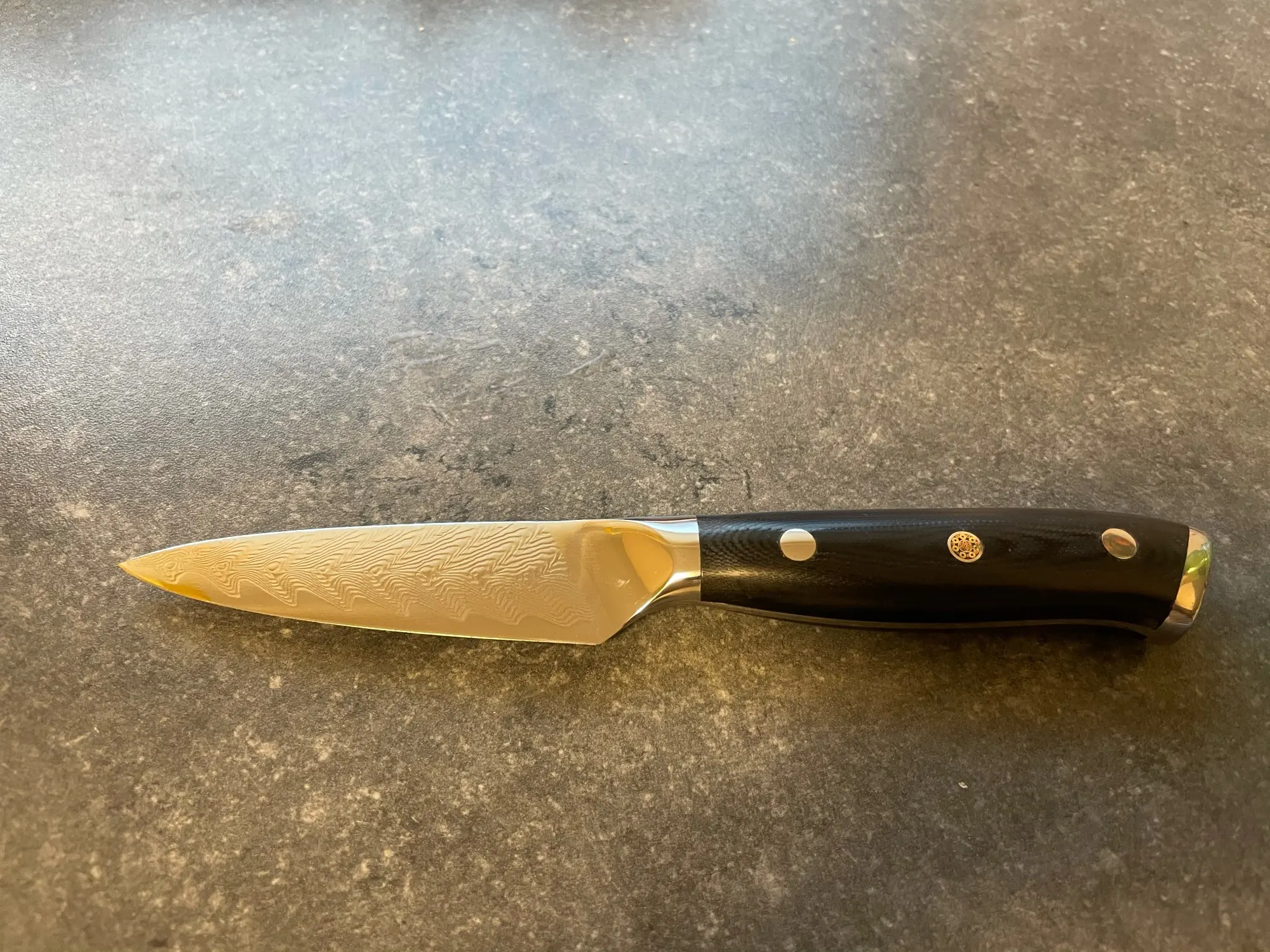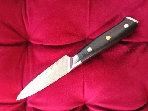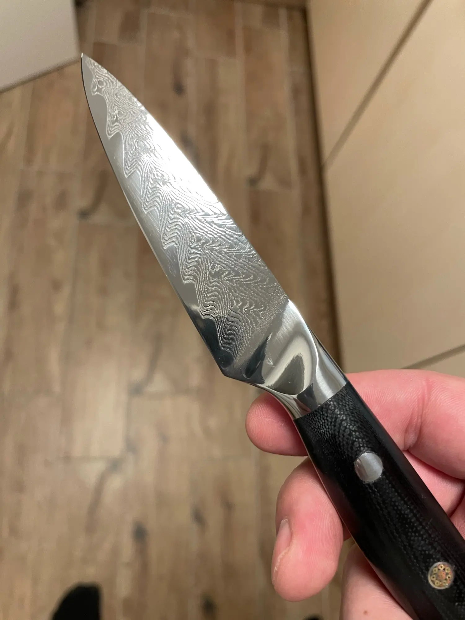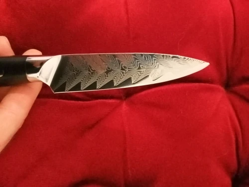 Нож хорошо сделан, даже если я не уверен, что Дамаск оригинальный, выглядит сделано, а не ribaditura dell steel. Тем не менее размер хороший, я также купил камень для корунда с 2000/5000 зернистостью и точить хорошо.