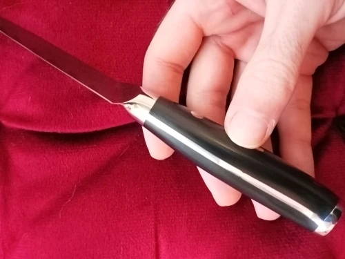 Нож очень красивый. Ручка маленькая. Подходит для маленькой женщины