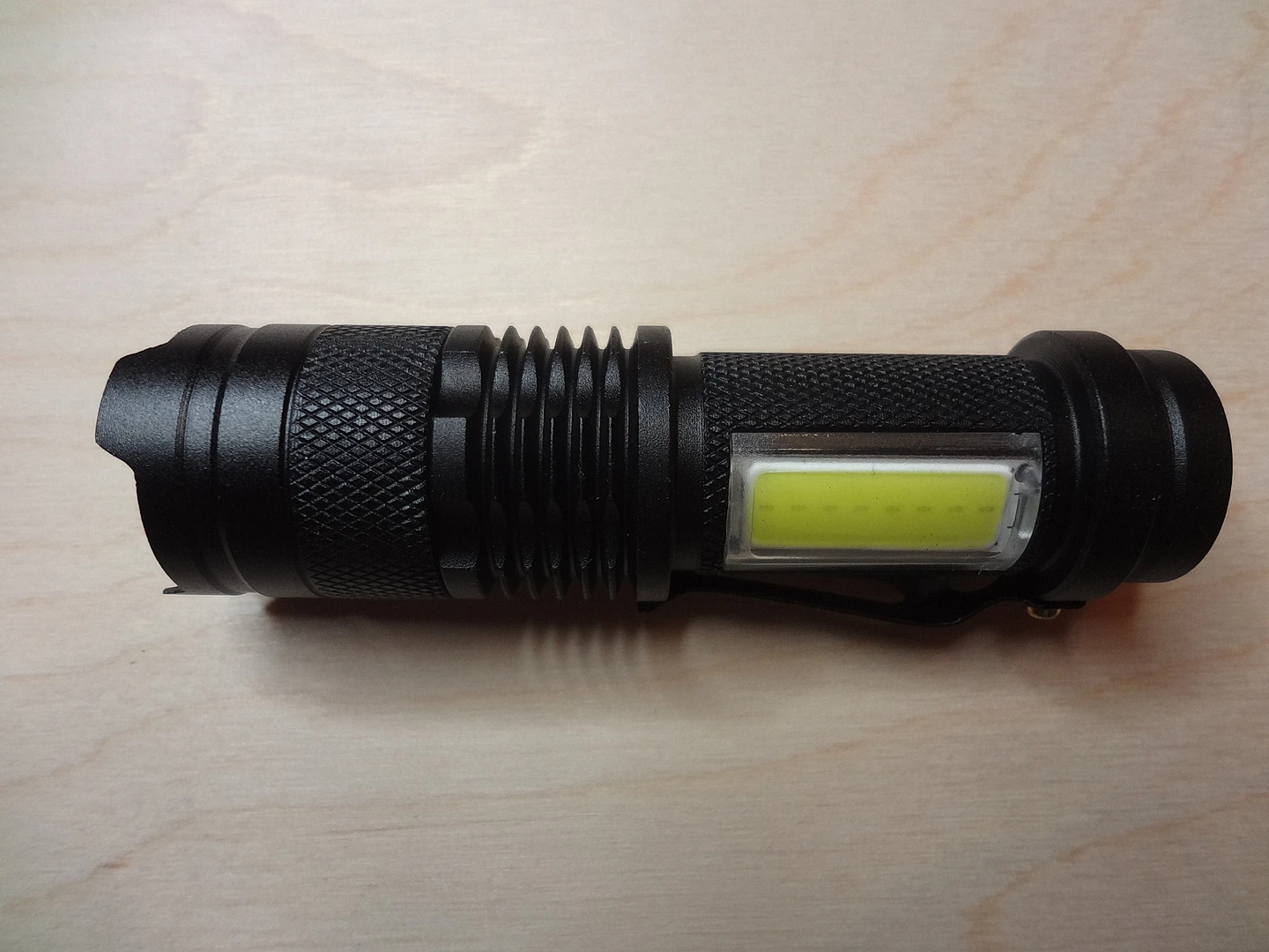 фонарик-огонь. действительно очень яркий к тому же компактный. луч лупит на пару сотен метров. боковая лампа тоже очень яркая и ощутимо нагревается при использовании. фотки в помещении, делал при включенном свете.