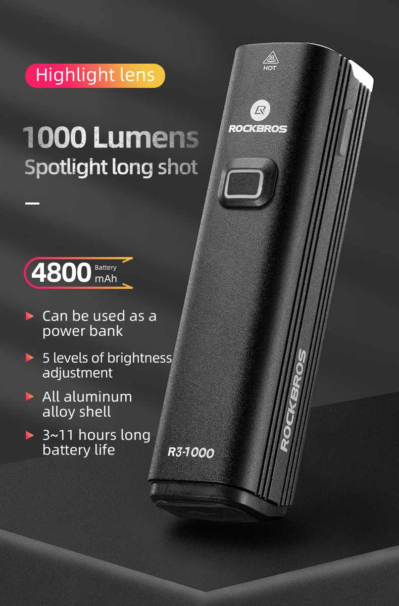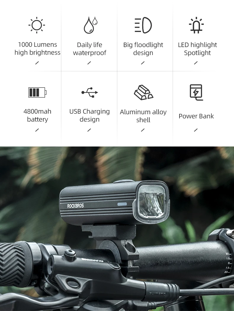 Фсветильник велосипедный ROCKBROS, 4800 мА ч, водонепроницаемый фонарик лм, светодиодный, USB, перезаряжаемый