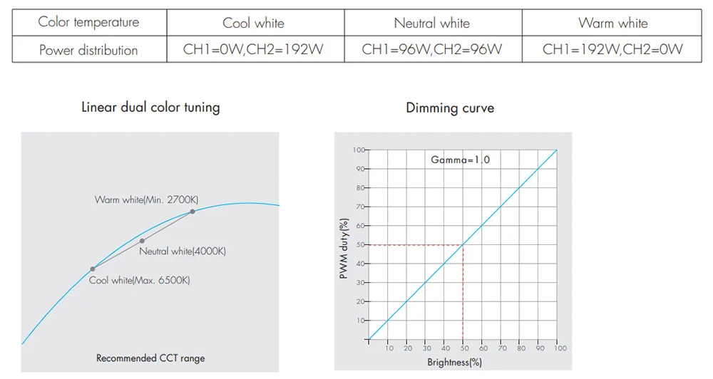 Каждый канал может поставлять до 192 Вт (@ 24 В), а баланс белого может контролироваться как таковой: