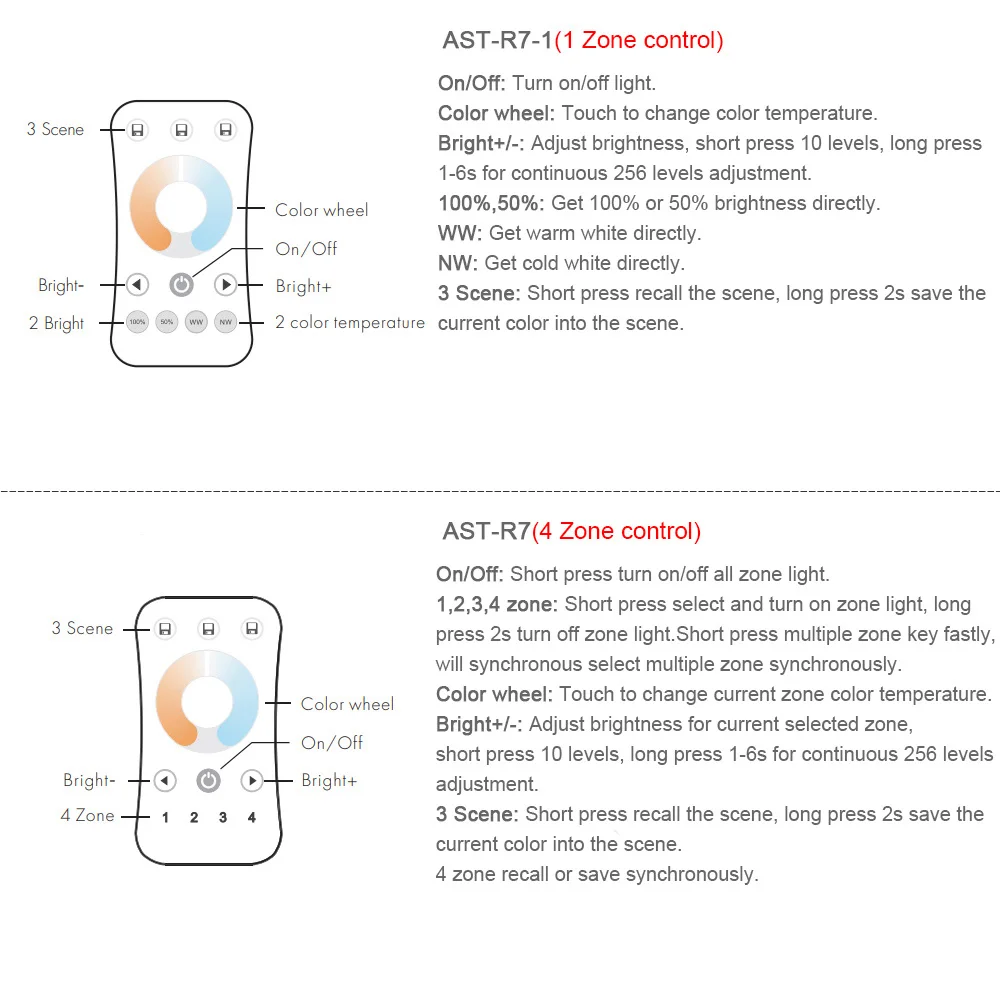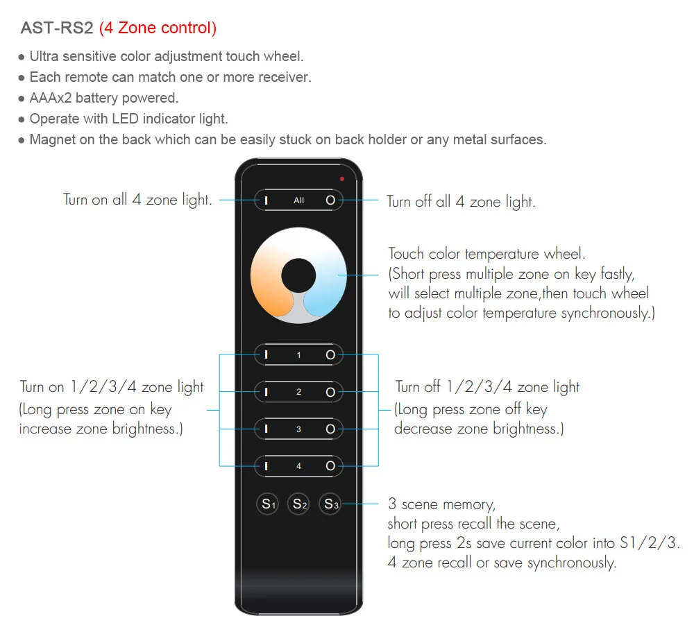 4 зоны управления (AST-RT7/AST-R7/AST-RS2)