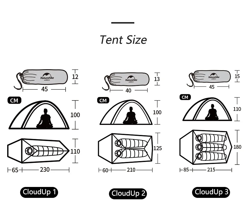 Туристическая палатка Naturehike Cloud Up Series 1 2 3, Ультралегкая уличная, обновленная версия для двух человек