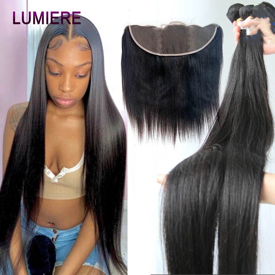 Прямые пряди волос с застежкой, 30, 32, 38, 40 дюймов, бразильские пряди волос с фронтальной застежкой, 100% пряди для наращивания волос Remy