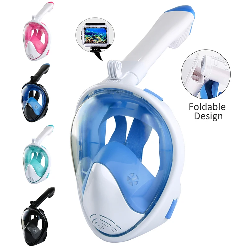 Маска для подводного плавания, складная, на все лицо, антизапотевающая, с креплением для камеры, для взрослых
