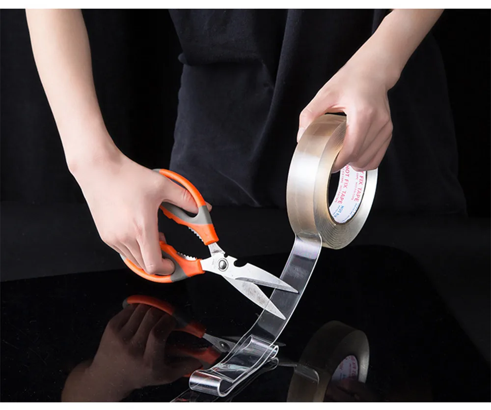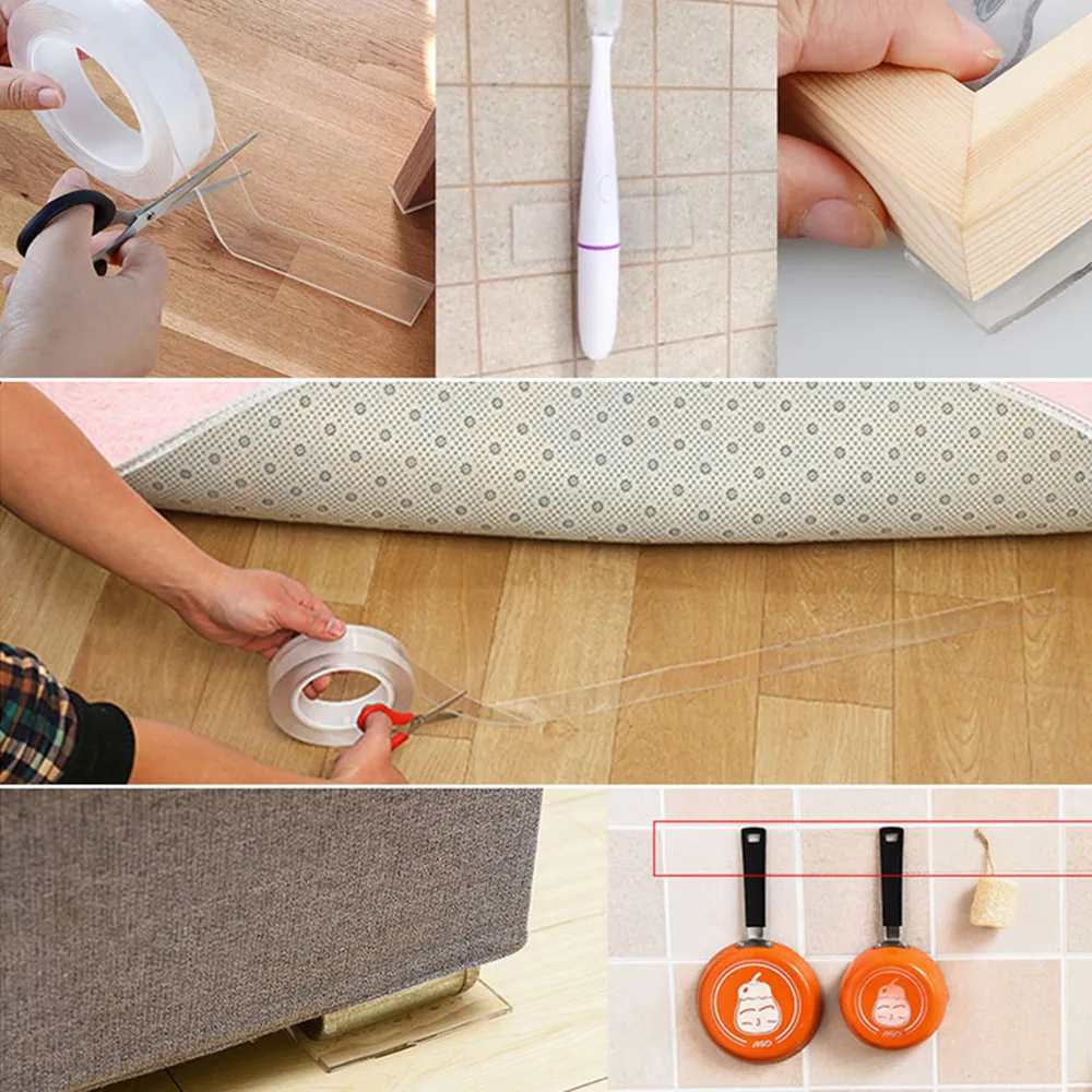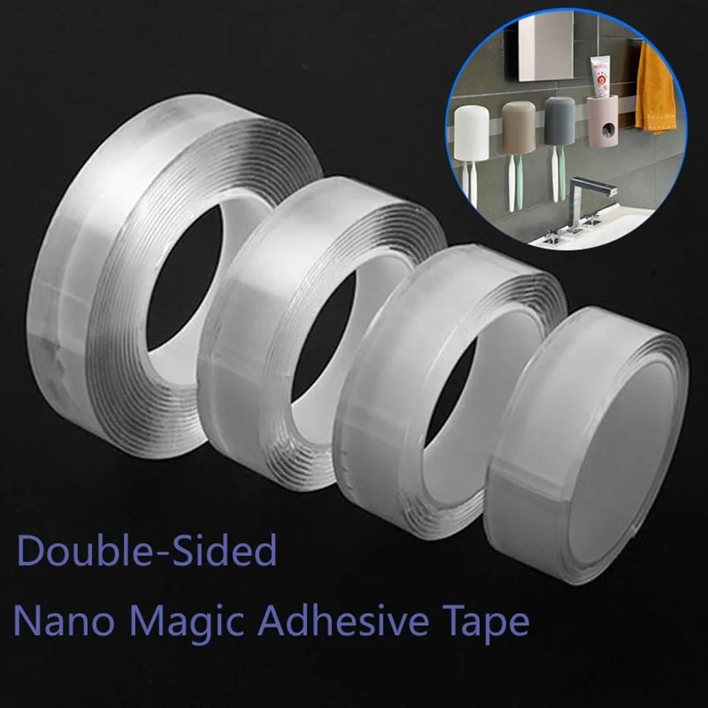 Двусторонняя нано-лента, 1 м, 2 м, 3 м, 5 м, многоразовая, прозрачная, бесследная, акриловая, очищаемая, водонепроницаемая, клейкая лента