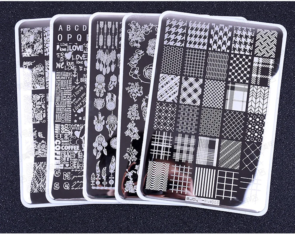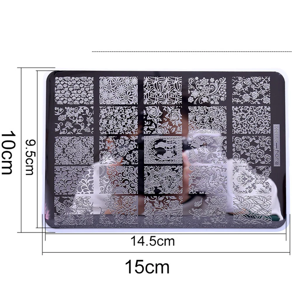 Пластины для стемпинга ногтей из нержавеющей стали 1 шт., прямоугольный шаблон для ногтей, мульти-узоры, маникюрные пластины сделай сам для дизайна ногтей, штамп # ZJ