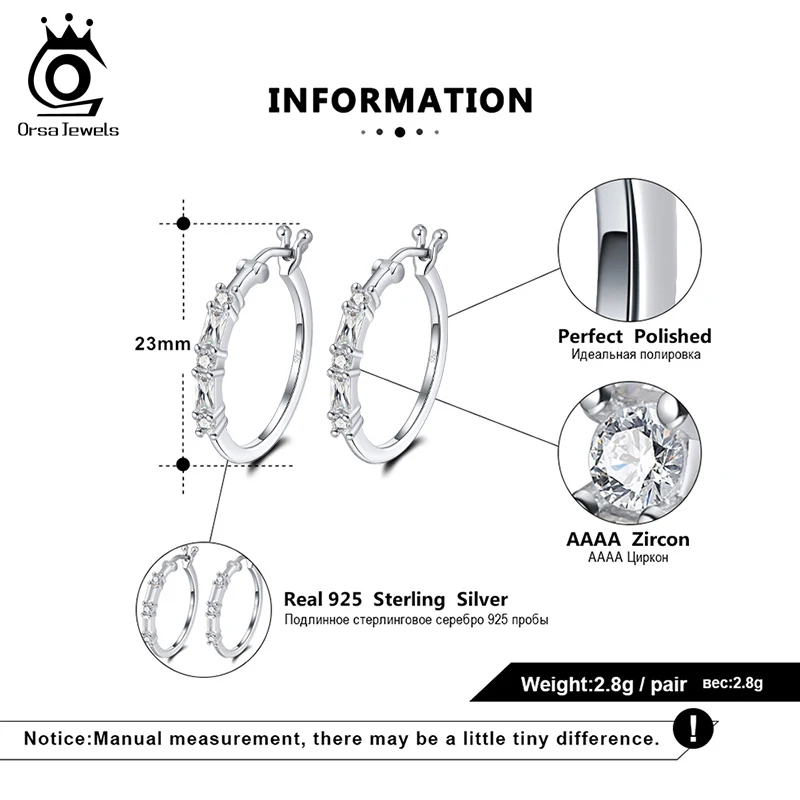 ORSA JEWELS женские серьги-кольца из чистого серебра 925 пробы, маленькие круглые серьги 23 мм, серебряные трендовые повседневные Свадебные ювелирные изделия SE240