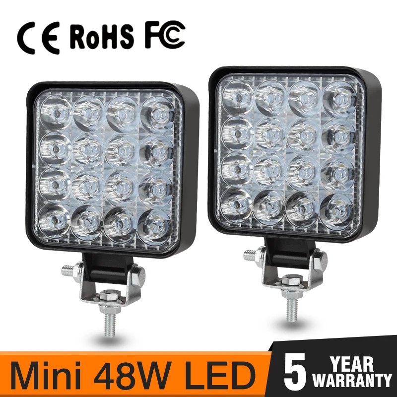 1. Квадратная высокомощная Светодиодная светильник жексветильник ная лента 2x, высокая мощность 16x3 Вт и белый светодиодный высокой интенсивности, цветовая температура 6000 K, 3520 люмен. Прочная конструкция: высококачественный алюминиевый корпус с черной окраской, регулируемый Монтажный кронштейн из нержавеющей стали и небьющиеся линзы, водонепроницаемость IP68, долговечность, выдерживают любые суровые условия. 2 в отличных погодных условиях, отличная водонепроницаемость, Пыленепроницаемость, ударопрочность и устойчивость к коррозии. 3. Длительный срок службы: Экологически чистая конструкция с низким энергопотреблением, со встроенным радиатором, более длительный срок службы, расчетное время-30000 часов. 4. Диапазон рабочего напряжения 10-30 В постоянного тока: подходит для всех типов грузовиков, внедорожников, джипов 4x4, внедорожников, горнодобывающей, морской, сельскохозяйственной и тяжелой техники. 5. Гарантия: 5 лет