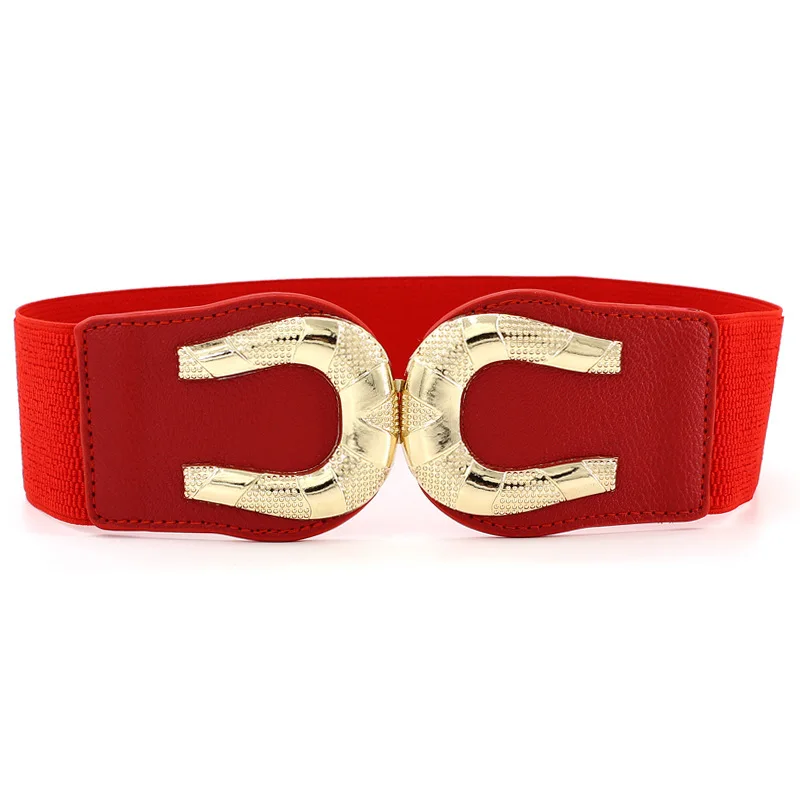 Женский эластичный пояс с декоративной талией в европейском и американском стиле, широкий эластичный пояс с U-образной пряжкой, аксессуары