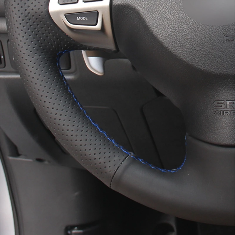 Черная кожаная синяя маркерная чехол рулевого колеса автомобиля для...