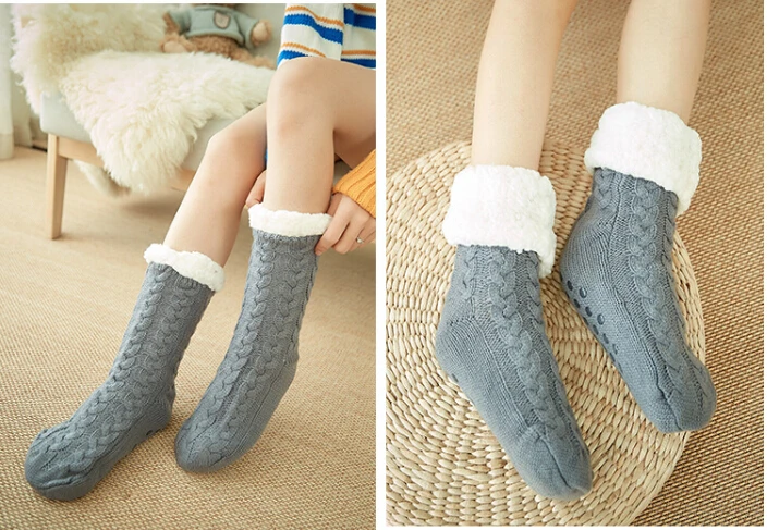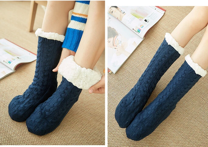 TOIVOTUKSIA осенне-зимние плотные плюшевые трикотажные хлопковые носки женские нескользящие домашние носки теплые до середины икры чулочно-носочные изделия для дома