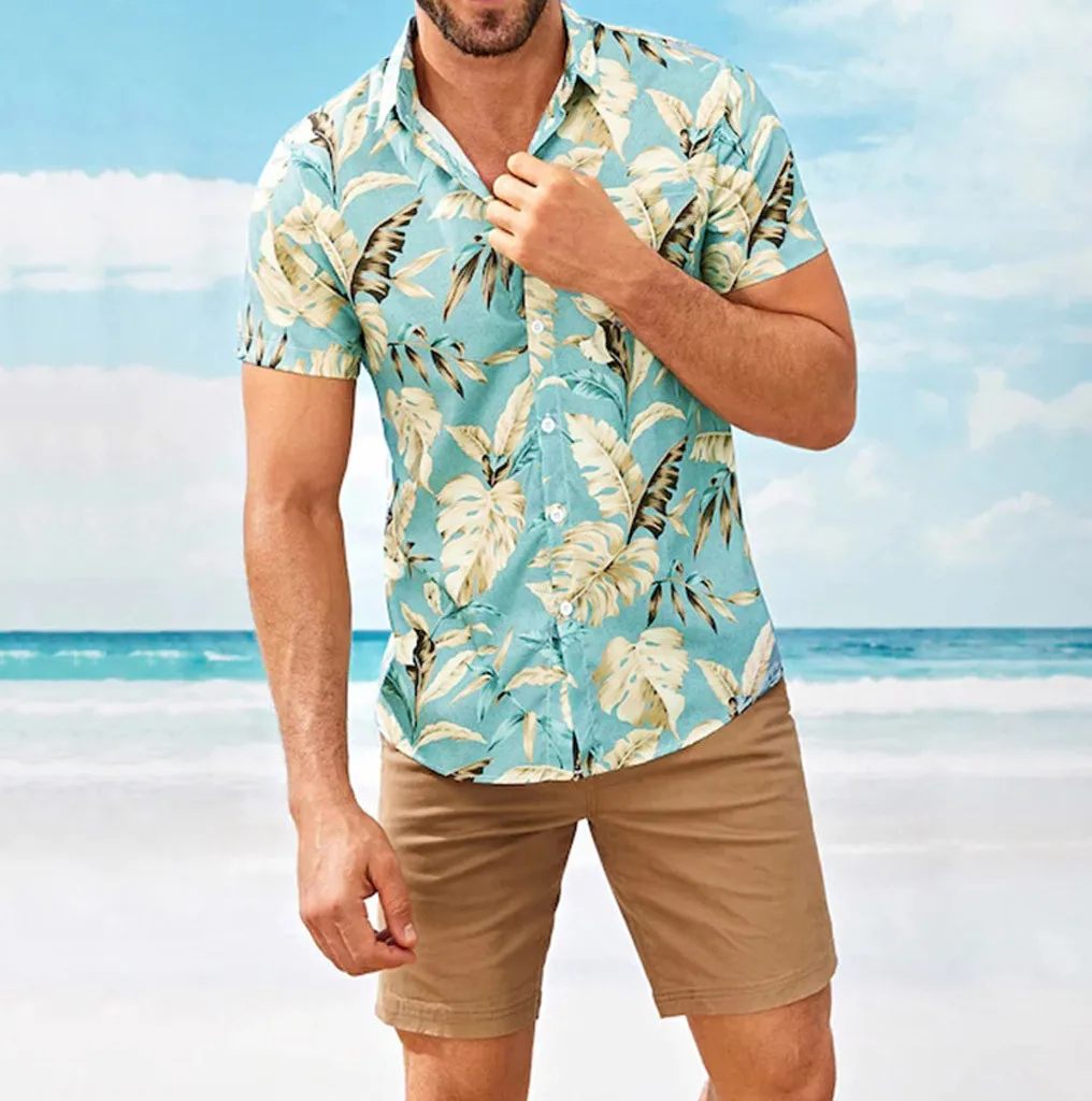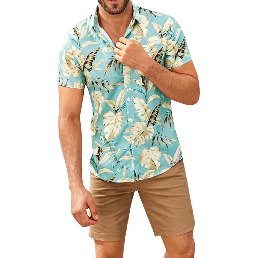 Гавайская рубашка Feitong, мужская летняя, модная, с отложным воротником, полосатым принтом, с коротким рукавом, топ, футболка, Мужская