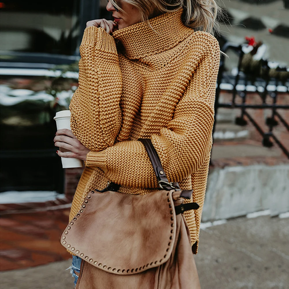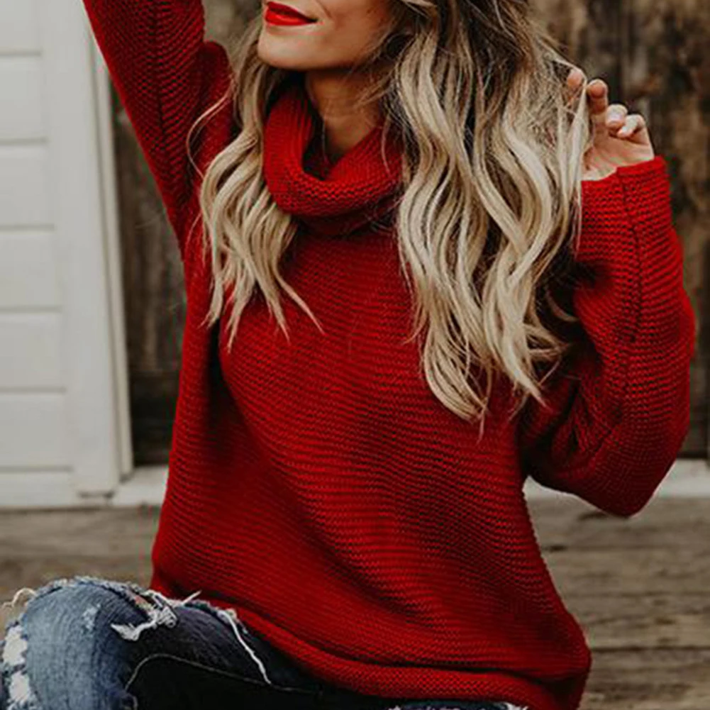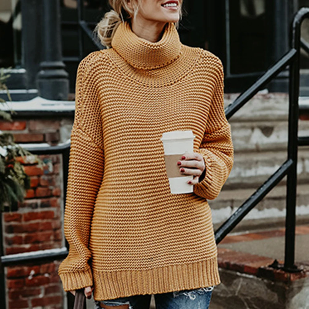 Женский Повседневный трикотажный пуловер с длинным рукавом и высоким воротом на осень и зиму