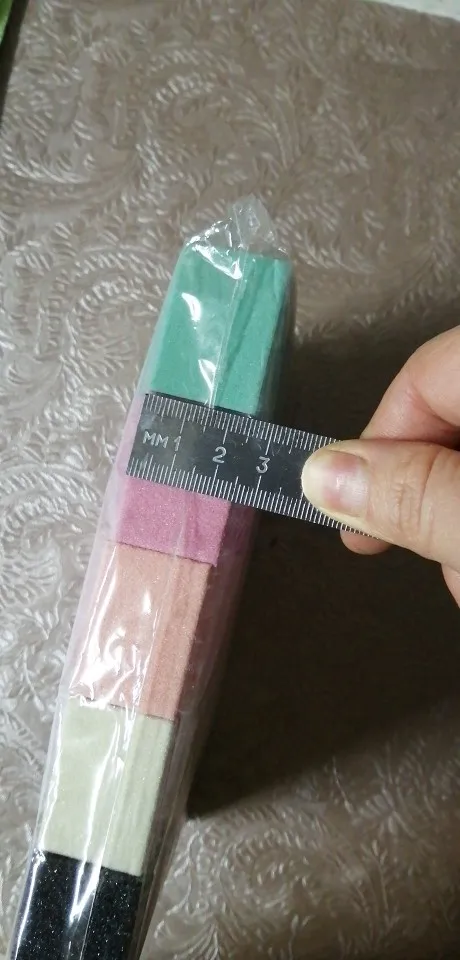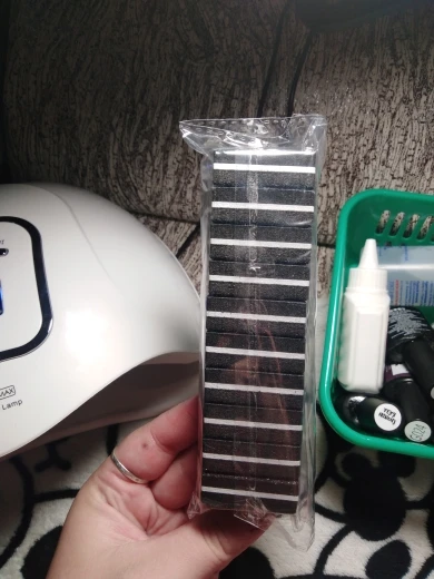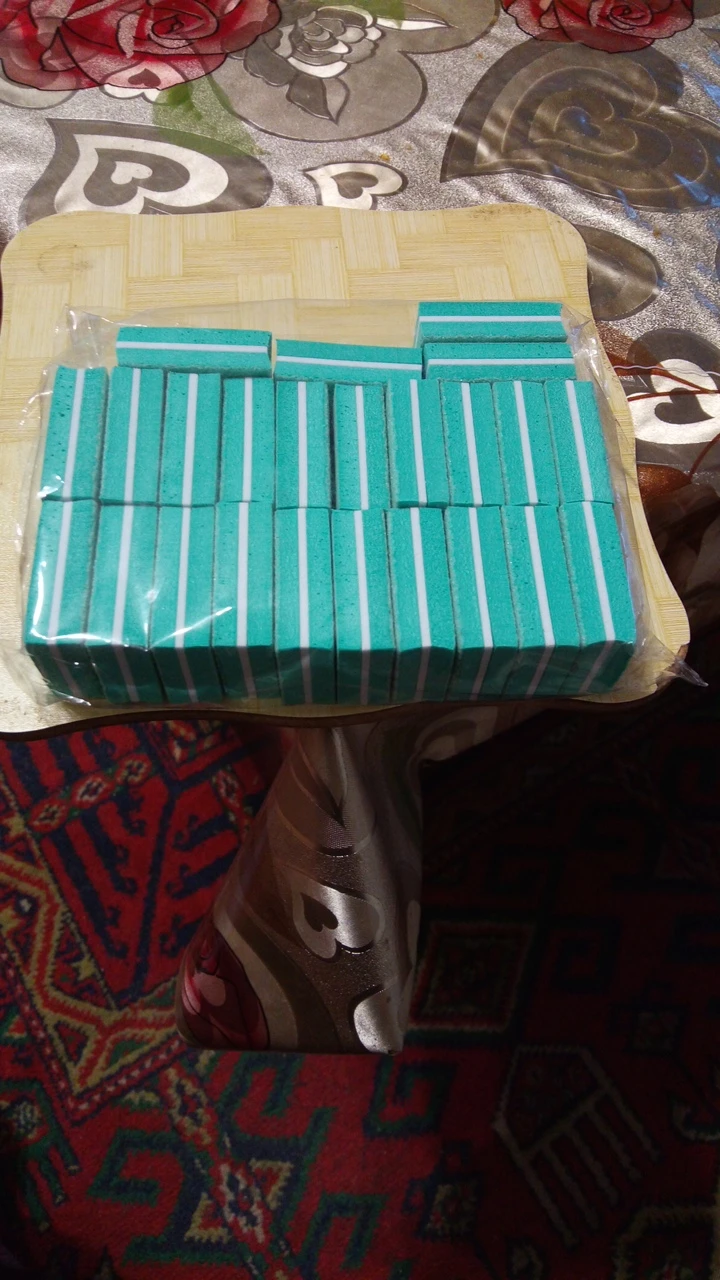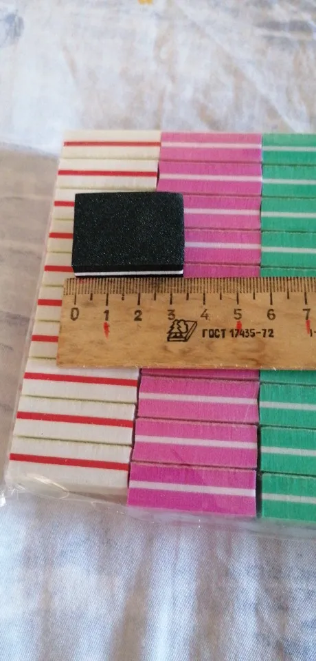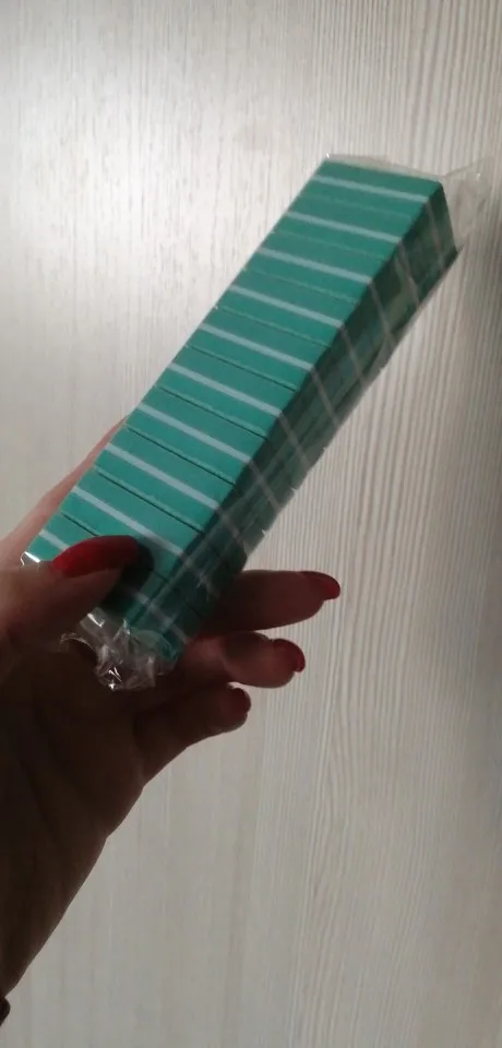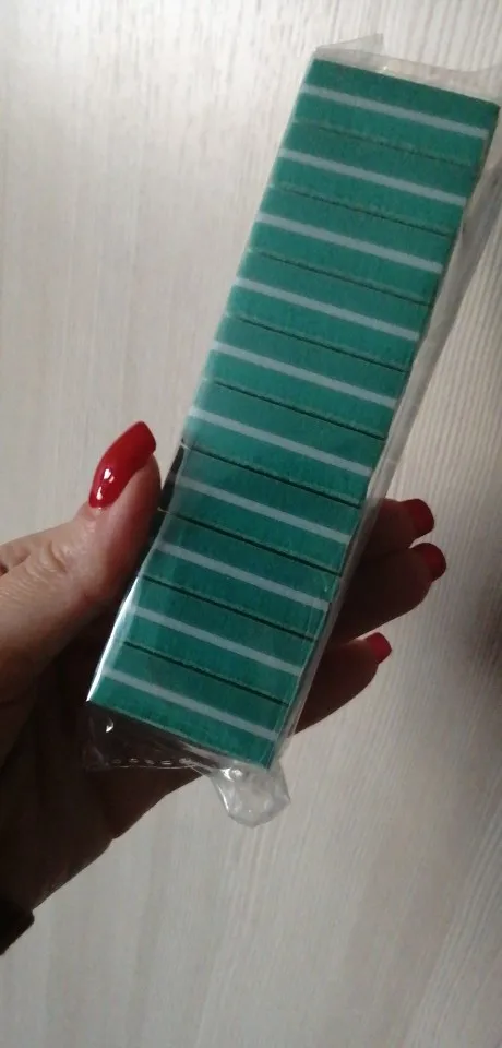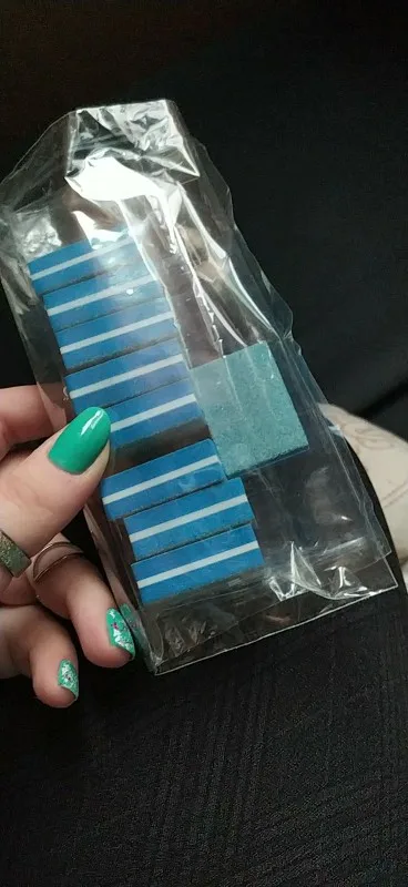 Бафики супер, но маленькие, абразив с одной стороны грубый, с другой мягкий, подойдут для многих задач. Но я все равно их режу на пополам, мне они нужны были только для чистки фрез во время маникюра) но и во время наращивания целым бафиком удобно зашлифовать поверхность после опила)) я довольна, если цена не вырастет, то ещё закажу 100% фото на спичечном коробке, что бы понятен был размер.