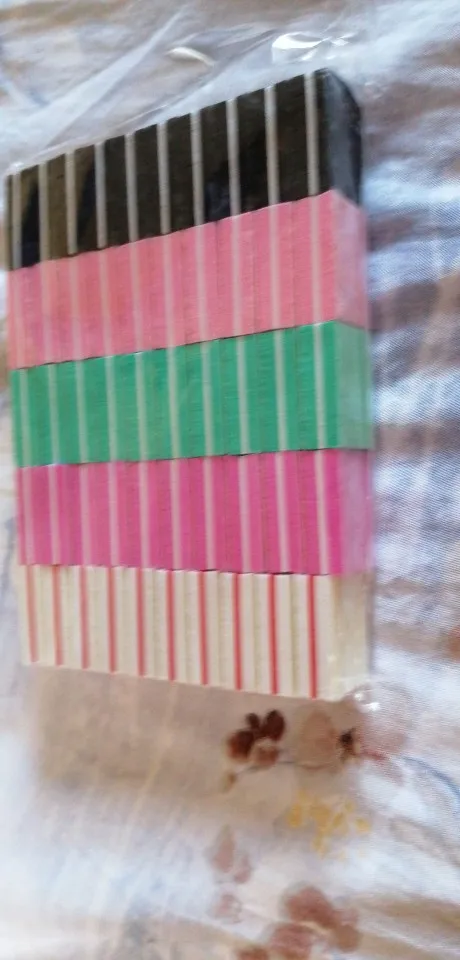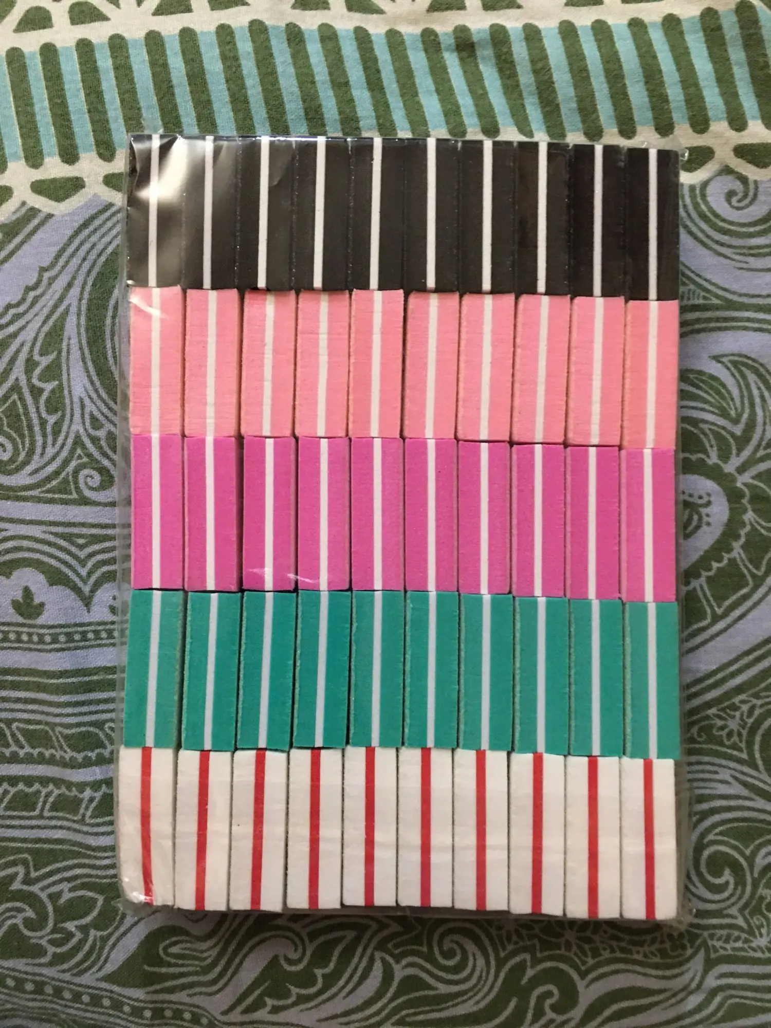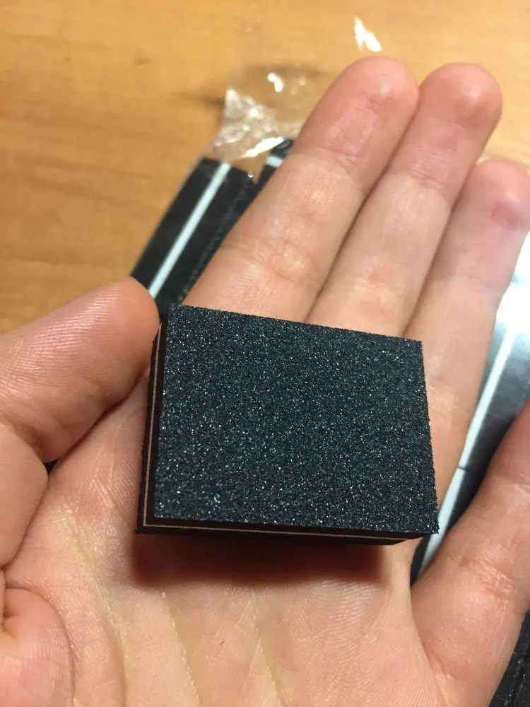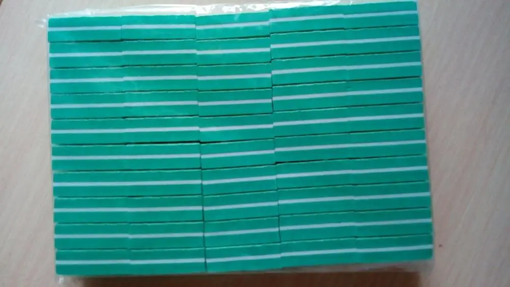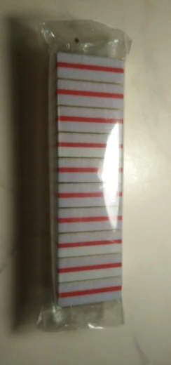 Бафики супер, но маленькие, абразив с одной стороны грубый, с другой мягкий, подойдут для многих задач. Но я все равно их режу на пополам, мне они нужны были только для чистки фрез во время маникюра) но и во время наращивания целым бафиком удобно зашлифовать поверхность после опила)) я довольна, если цена не вырастет, то ещё закажу 100% фото на спичечном коробке, что бы понятен был размер.
