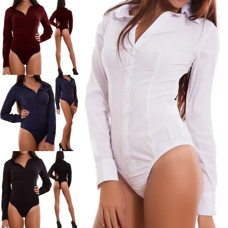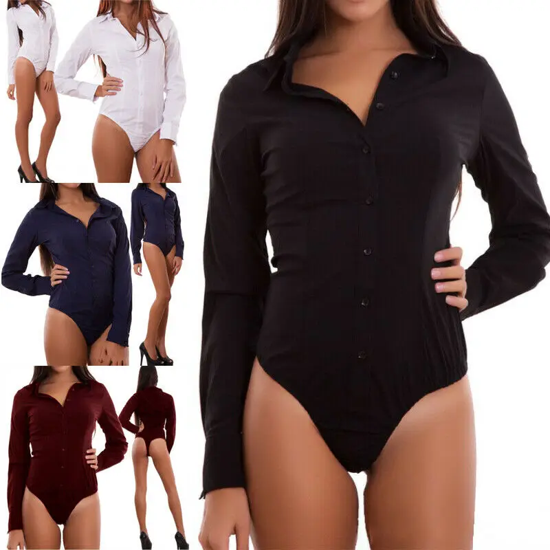 Женский Повседневный комбинезон с V-образным вырезом, длинным рукавом и пуговицами
