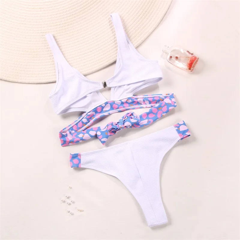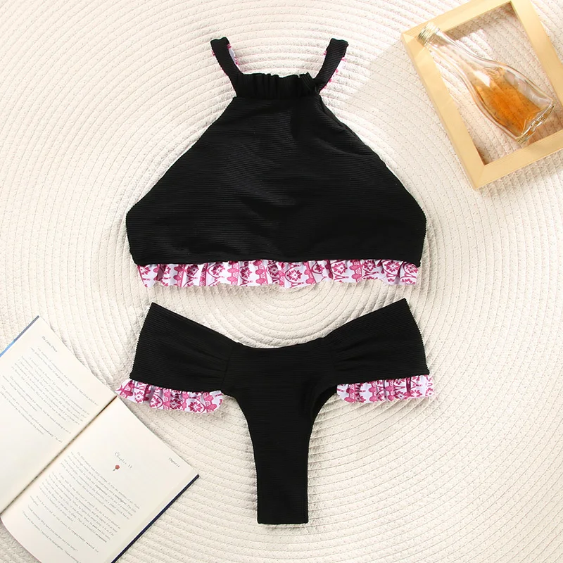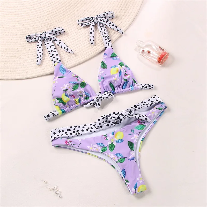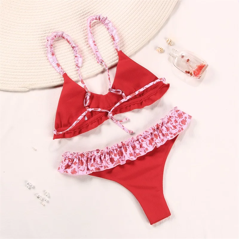 Бикини Miyouj с оборками и цветочным принтом, однотонный купальник, женское бикини на шнуровке, новый купальник с принтом, женский купальный костюм, комплект бикини со шнуровкой