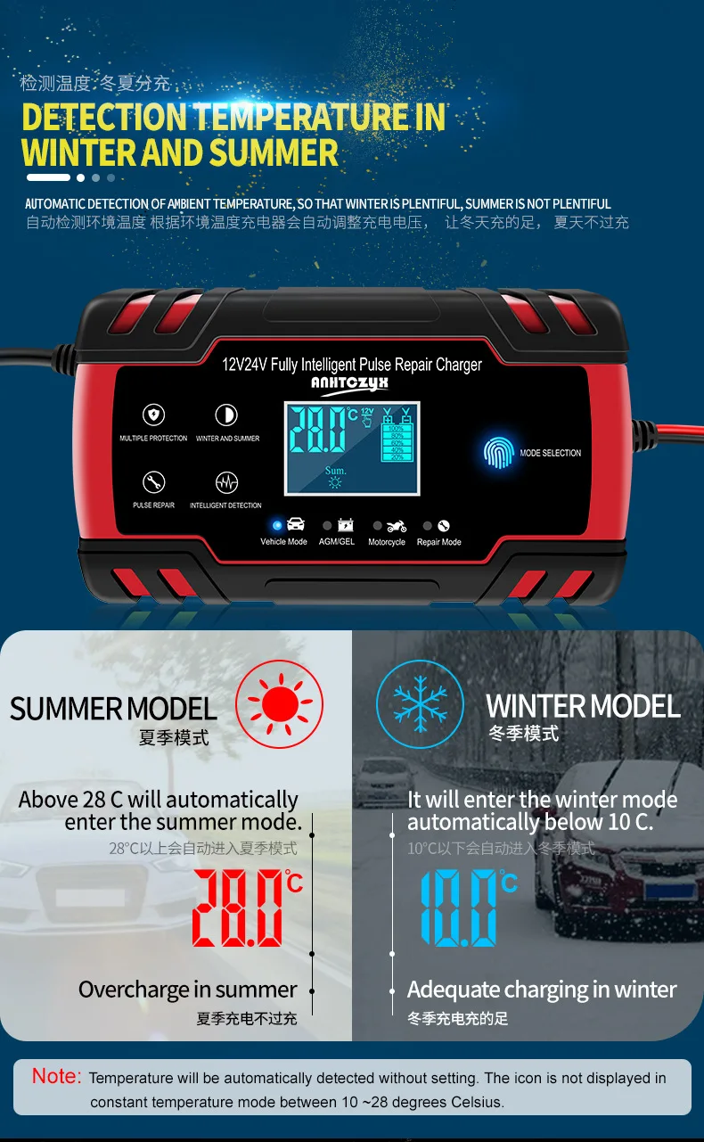 • Управление микропроцессором (ЦП). • 3 этап автоматический индикация во время зарядки: • Это полностью автоматическое зарядное устройство с 3 этапами зарядки. • Автоматическая зарядка защищает аккумулятор от перезарядки. Таким образом, вы можете оставить зарядное устройство, подключенное к батарее на неопределенный срок. • 3 зарядные устройства подходят для большинства типов аккумуляторов, включая кальций, гель и AGM, мокрый батарей. Они также могут помочь восстановить сливные и сульфированные батареи. • Типы батарей: большинство типов свинцово-кислотных батарей, включая кальций, гель и AGM, влажные, EFB и т. Д. • Технология переключения: Да • Защита полярности: Да • Выходная короткая Защита: да • Защита без подключения аккумулятора: Да • Защита от перенапряжения: Да • Защита от перегрева: Да • Охлаждение: Вентилятор • Входное напряжение: 100-240 В переменного тока, 50-60 Гц • Номинальная мощность: 12V 8A 24V 4A • Минимальная Начальное напряжение: 2,0 V • Диапазон батарей: 6-150 Ач • Термозащита: 65'C +/-5'C • Эффективность: приложение. 85%. • Стандарты соответствия: CB,CE, IEC60335, EN61000, EN55014 • Размеры (L×W×H): 170 × 98 × 58 мм