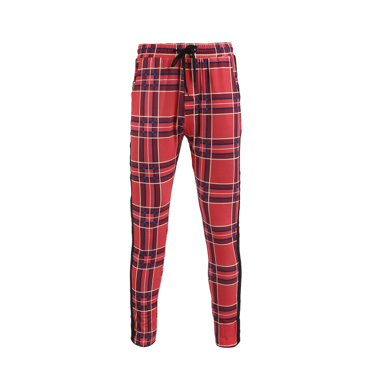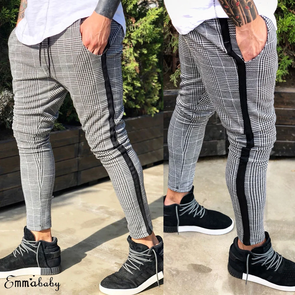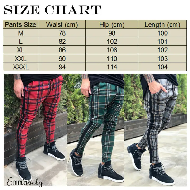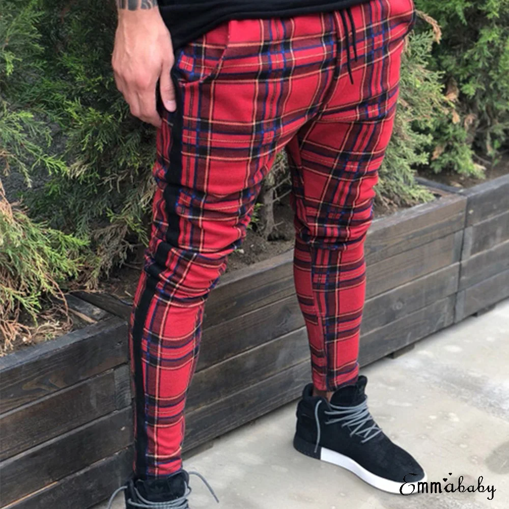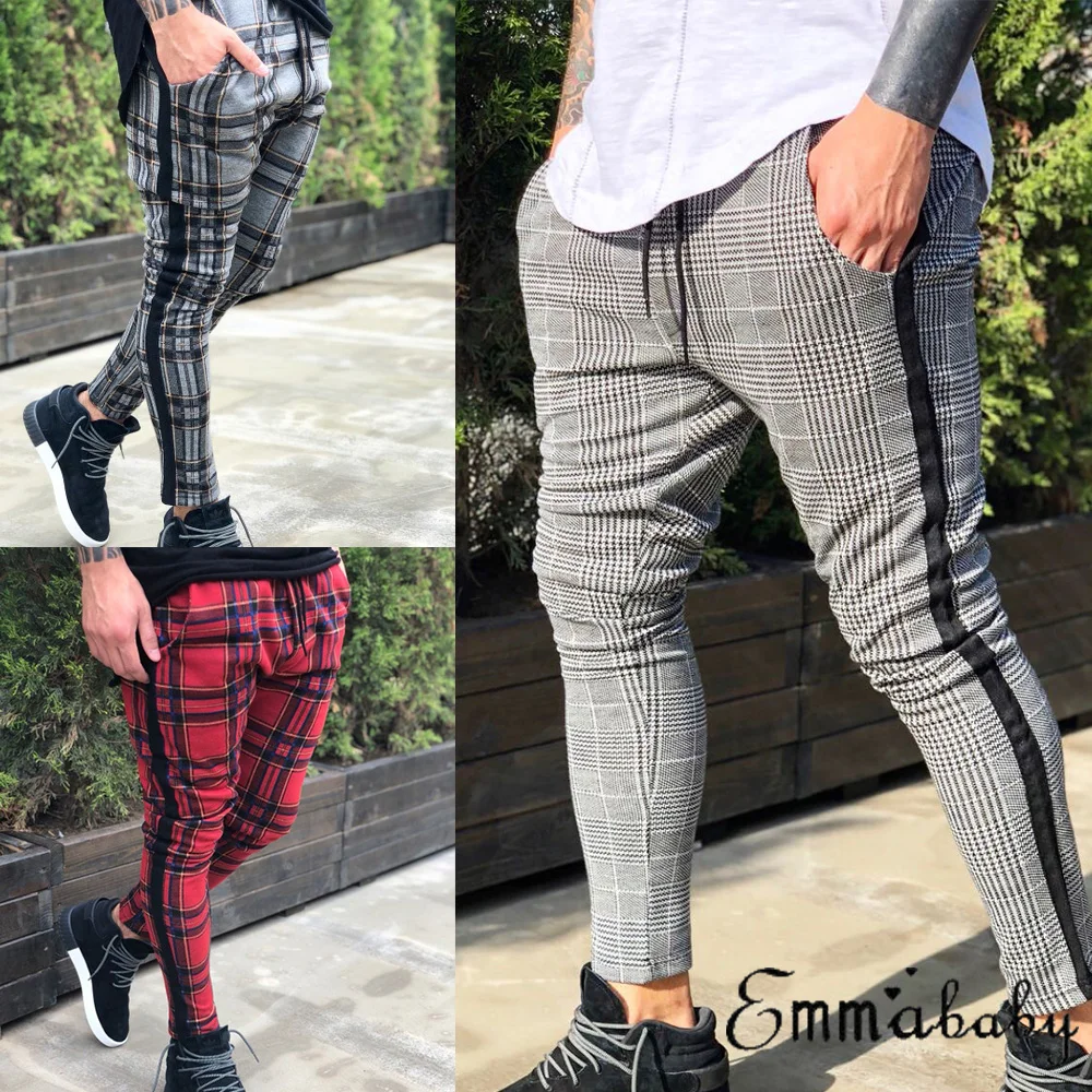 Брюки мужские узкие эластичные, модные облегающие штаны в контрастную клетку, повседневные смарт-брюки, красный зеленый серый