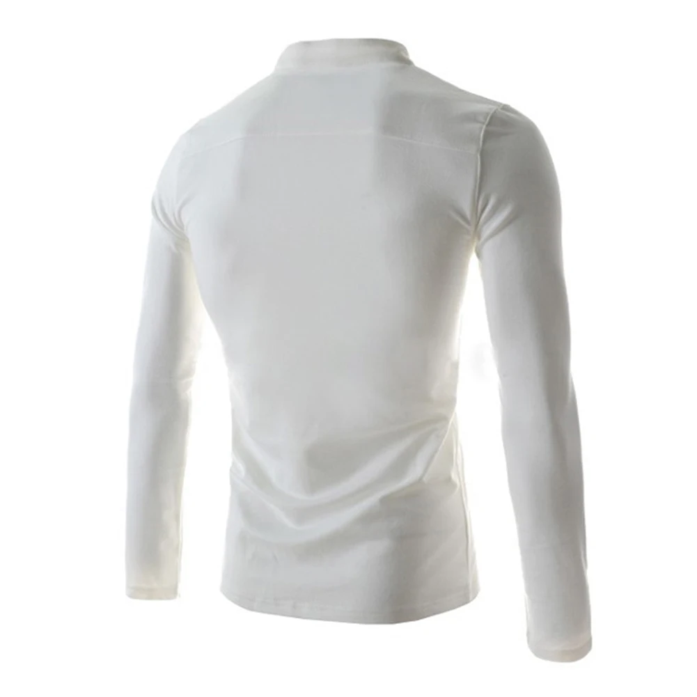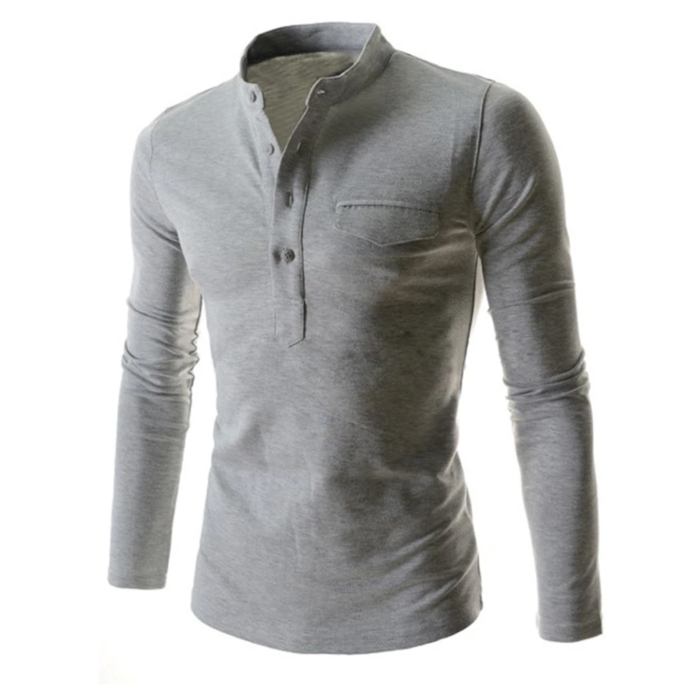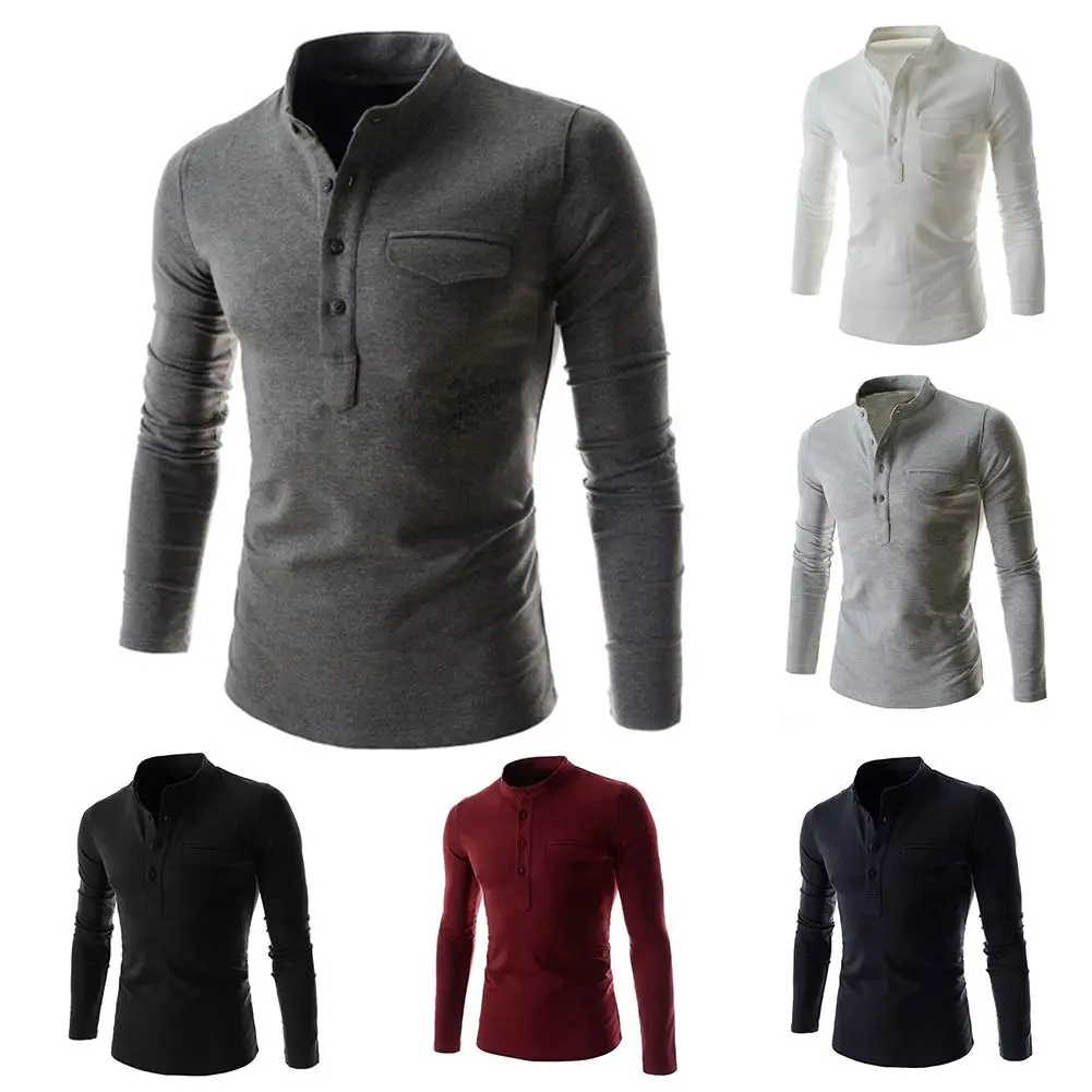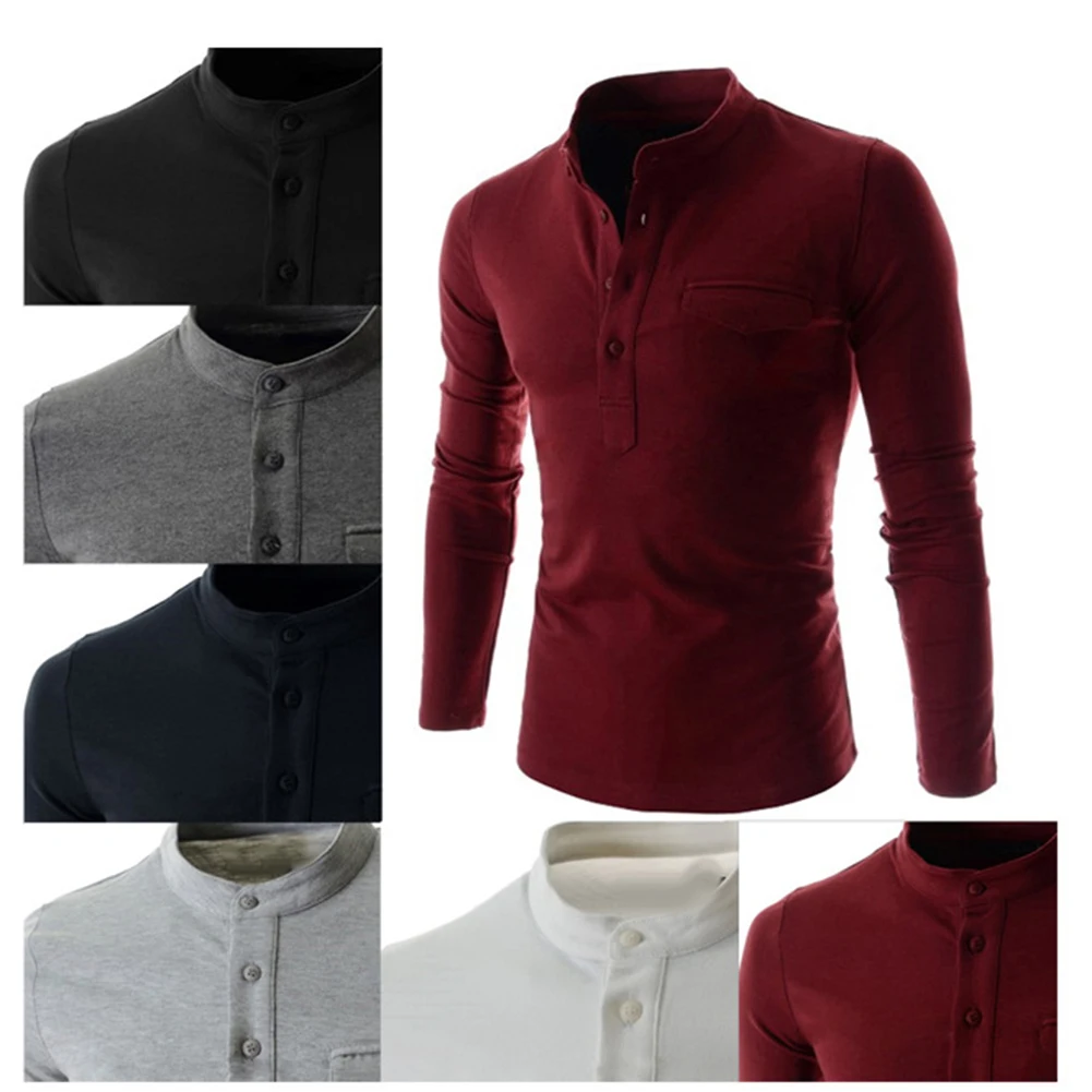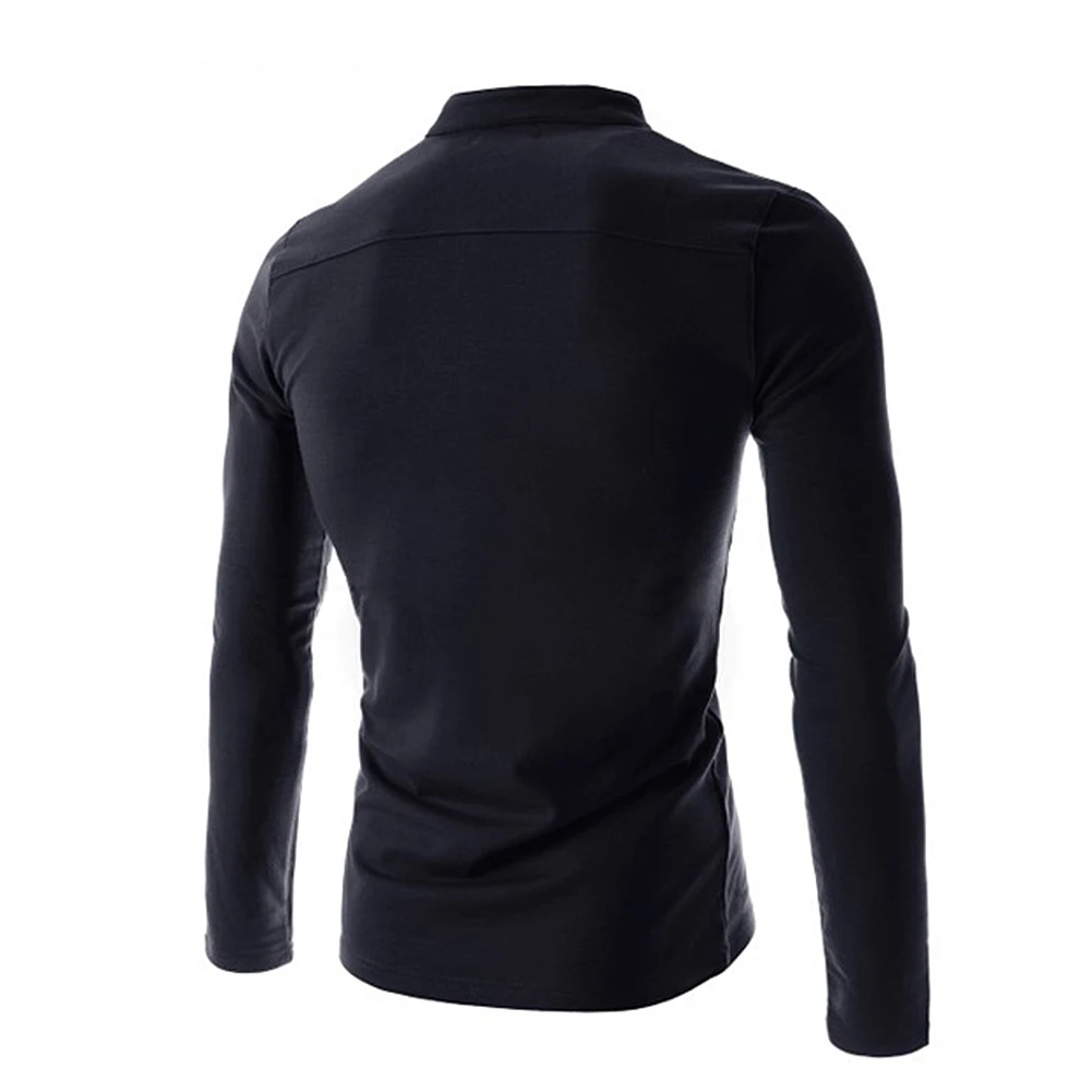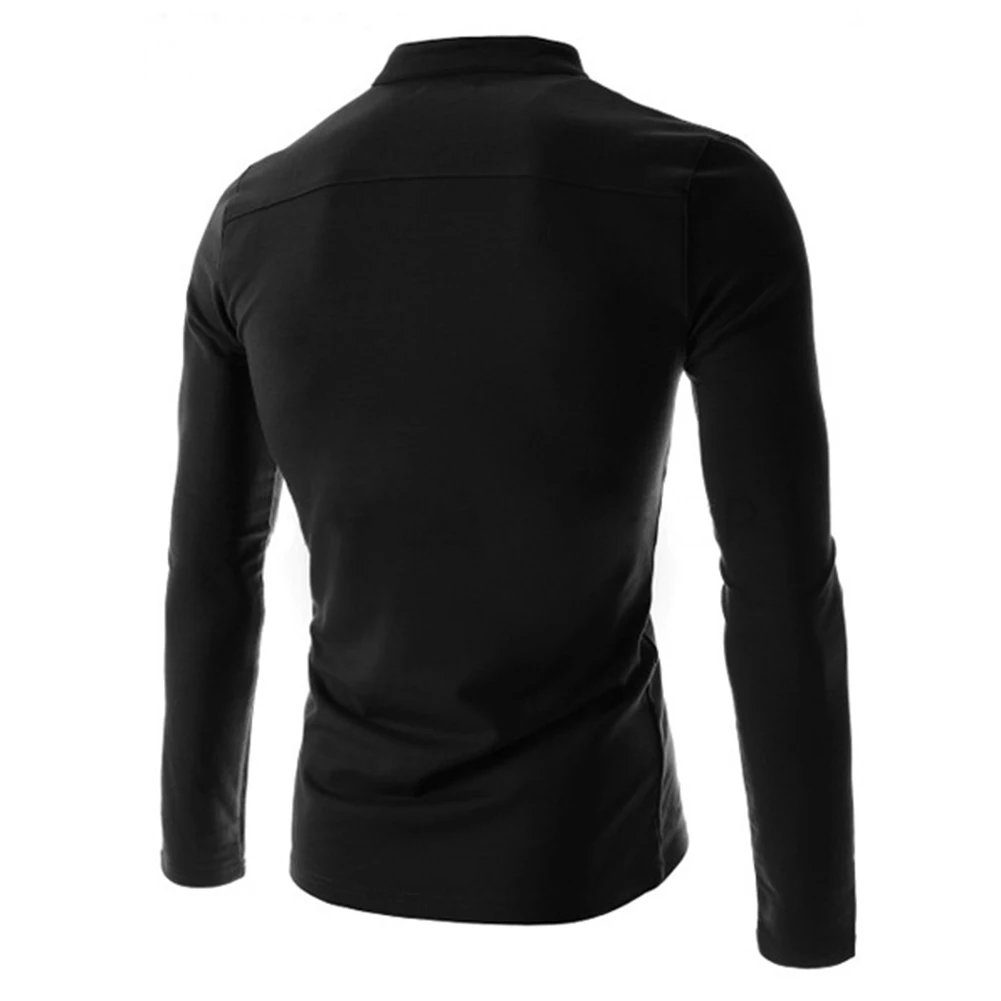 Футболка мужская с отложным воротником, Повседневная приталенная рубашка с длинными рукавами, на пуговицах, однотонная,