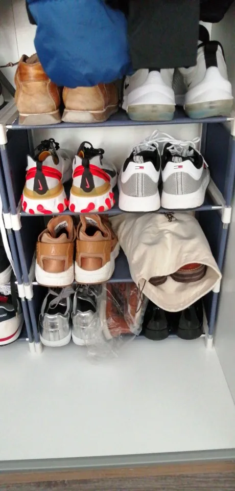 Легко настроить. Я купил 4 слоя и каждый слой может хранить 2 обуви. Хотя каждый слой не является достаточно высоким для ботинок Martin, все еще может хранить 2 ботинок, пологая их вниз. Хороший продукт и работает так же, как и ожидалось!