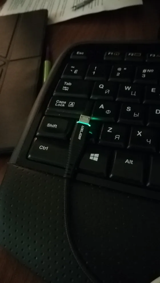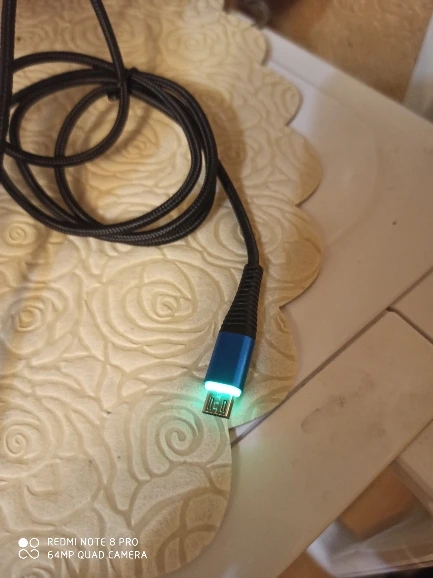 отличный шнур для зарядки, очень быстро заряжает, светится в темноте, но он короткий, нужно заказывать длиннее. Посылку кинули в почтовый ящик. Доставка около 2-х месяцев. Продавца рекомендую.