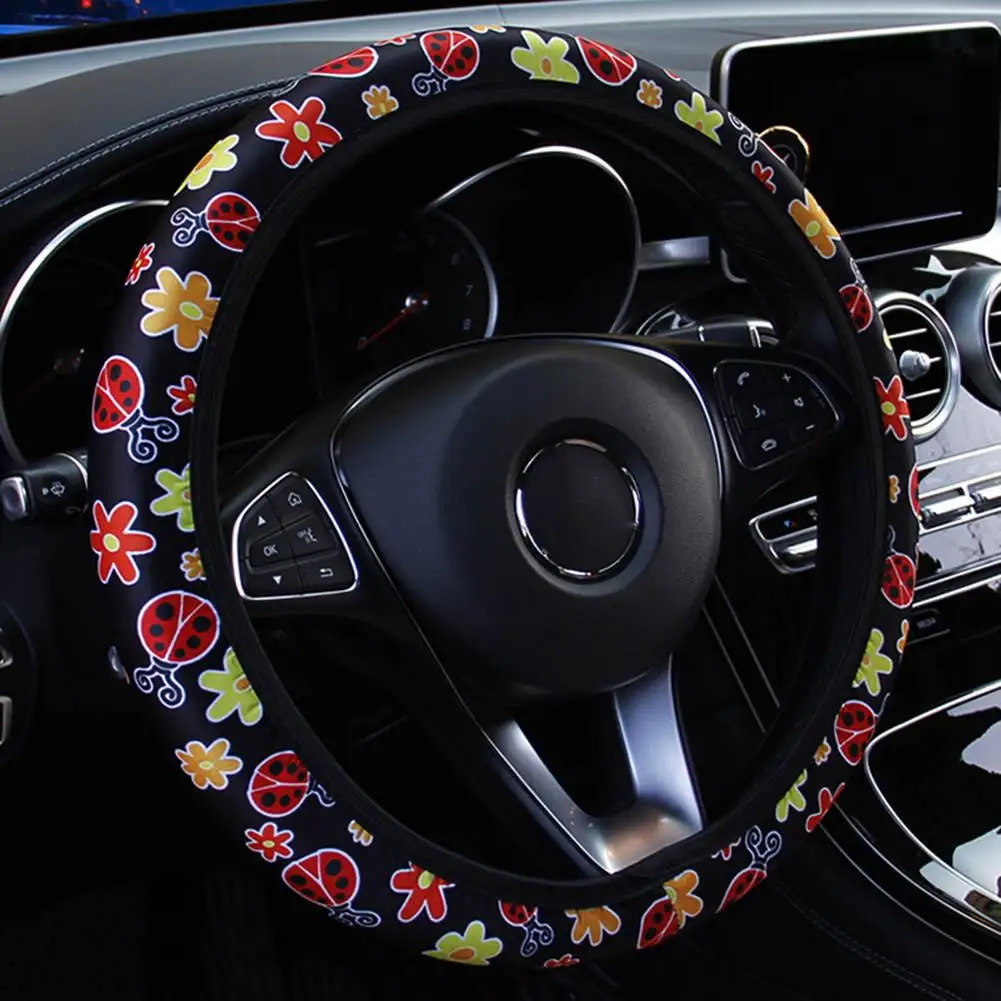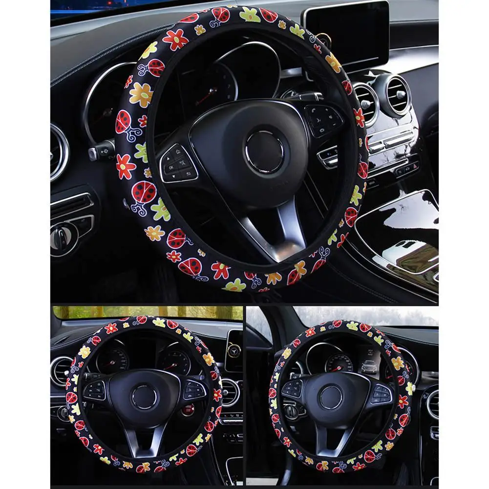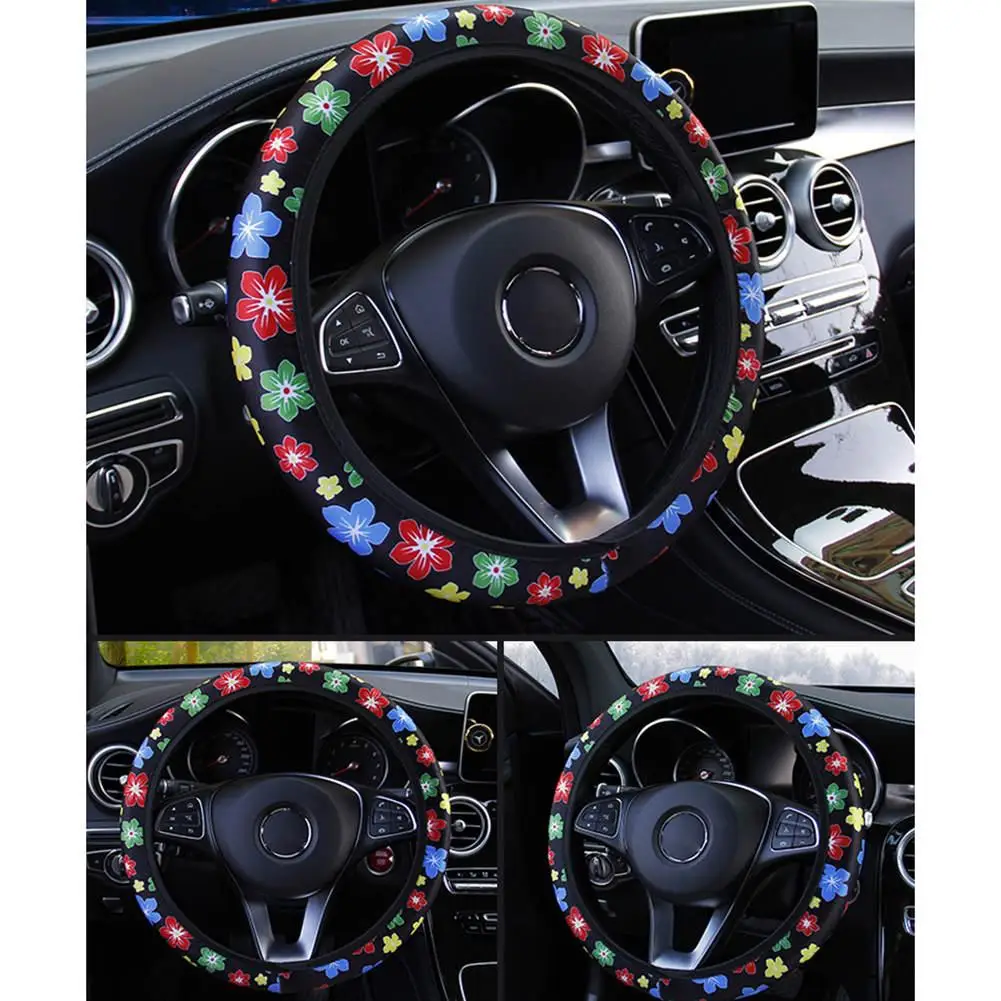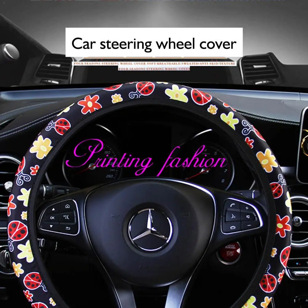 Автомобильный Противоскользящий чехол на рулевое колесо, противоскользящий автомобильный чехол на рулевое колесо с цветочным принтом, шелковая ткань, Стайлинг автомобиля