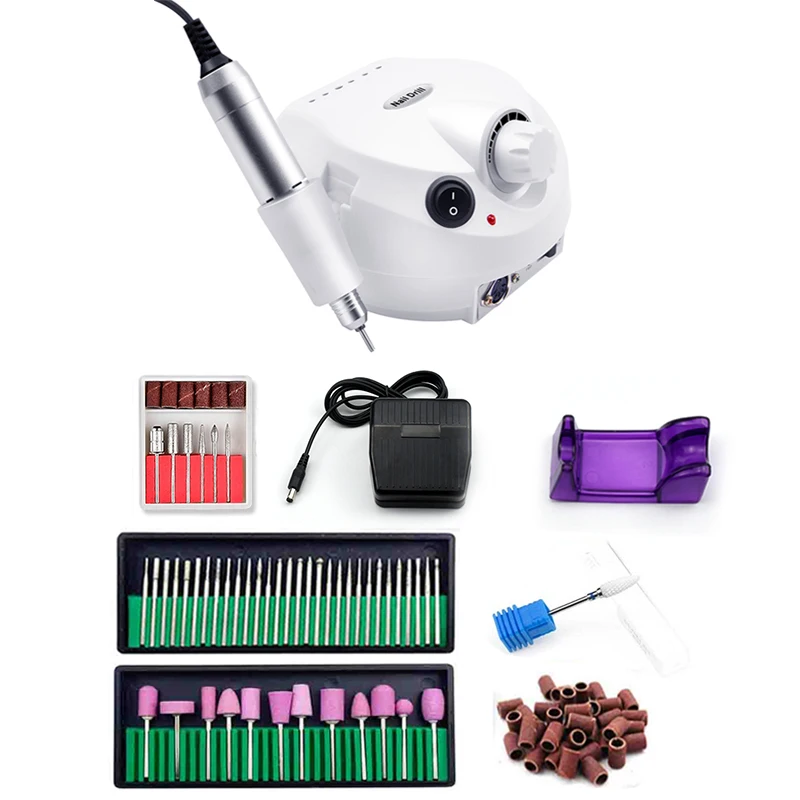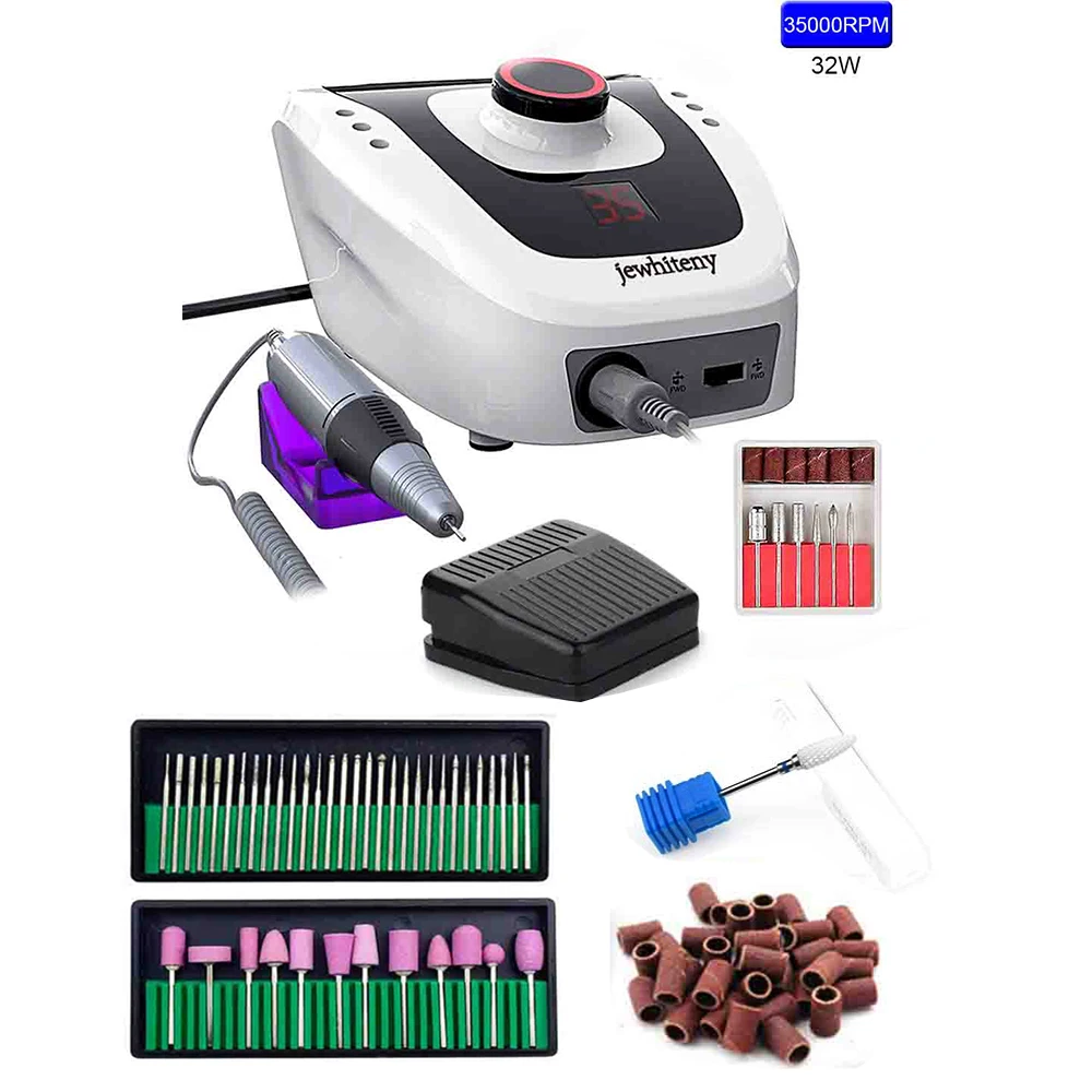 Электрическая дрель для ногтей, 35000 об.мин., 32 Вт, фрезерный набор, 1 упаковка песочного кольца, 2 коробки инструментов для маникюра