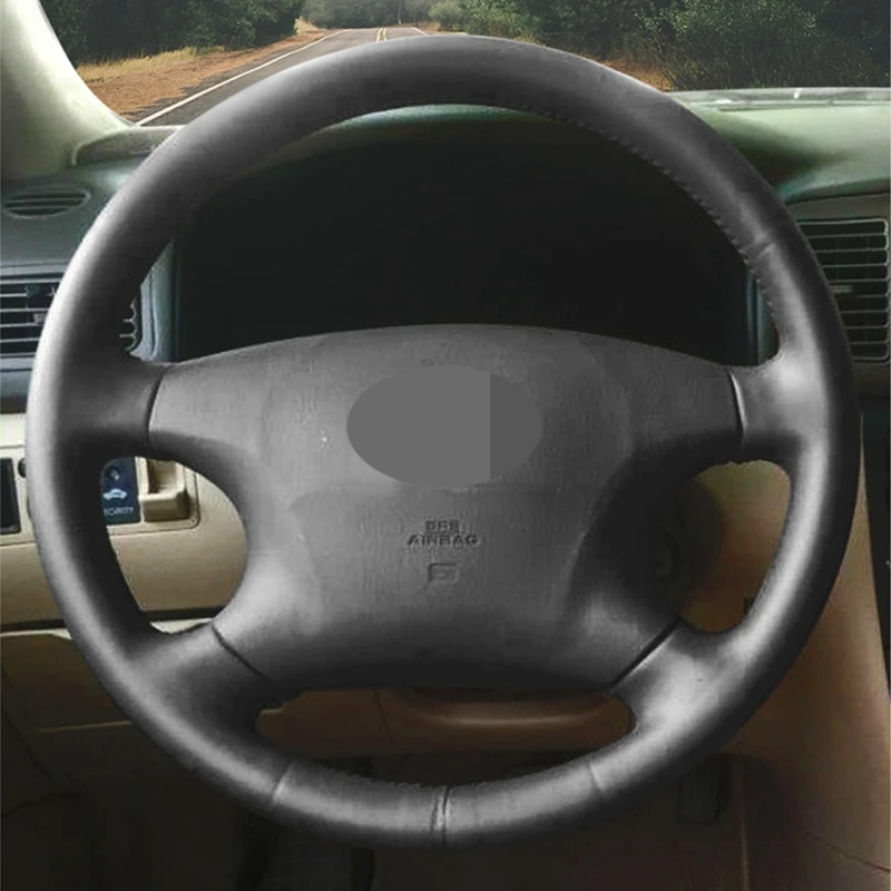 DIY ручной работы из натуральной кожи, черного цвета Чехлы рулевого колеса автомобиля Обёрточная бумага для Toyota Camry 2002-2004 Highlander Avalon 2002-2004