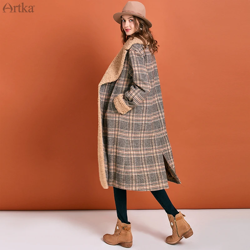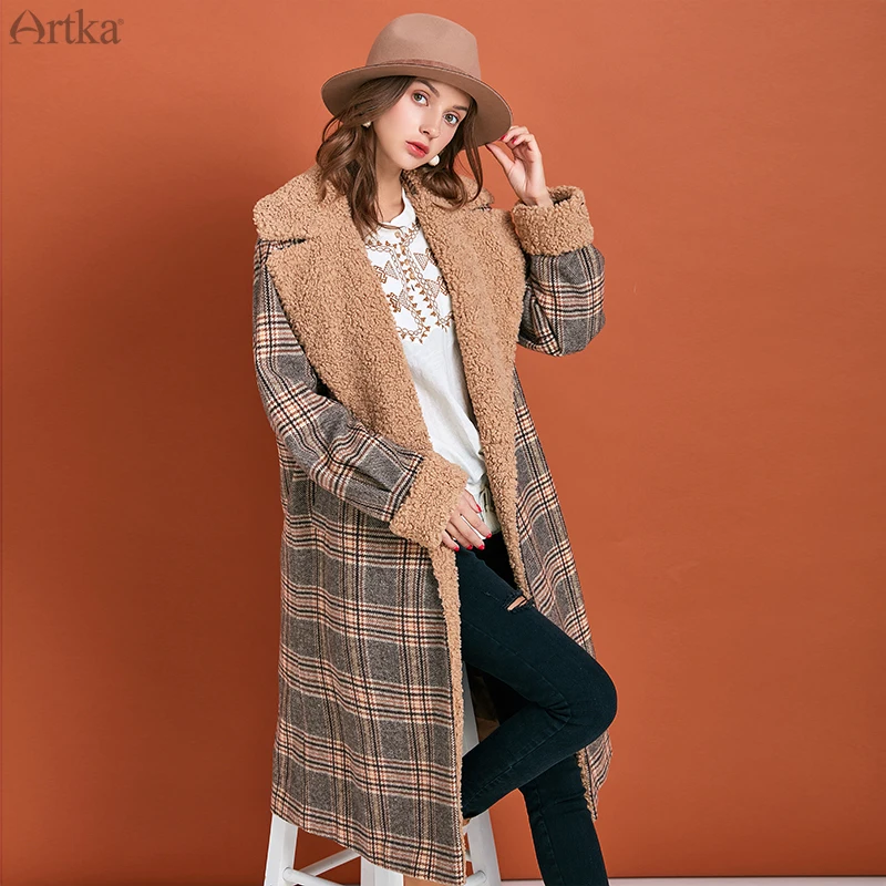 Пальто женское Шерстяное в клетку, в стиле ретро, с лацканами, FA10191D, зимнее, 2019
