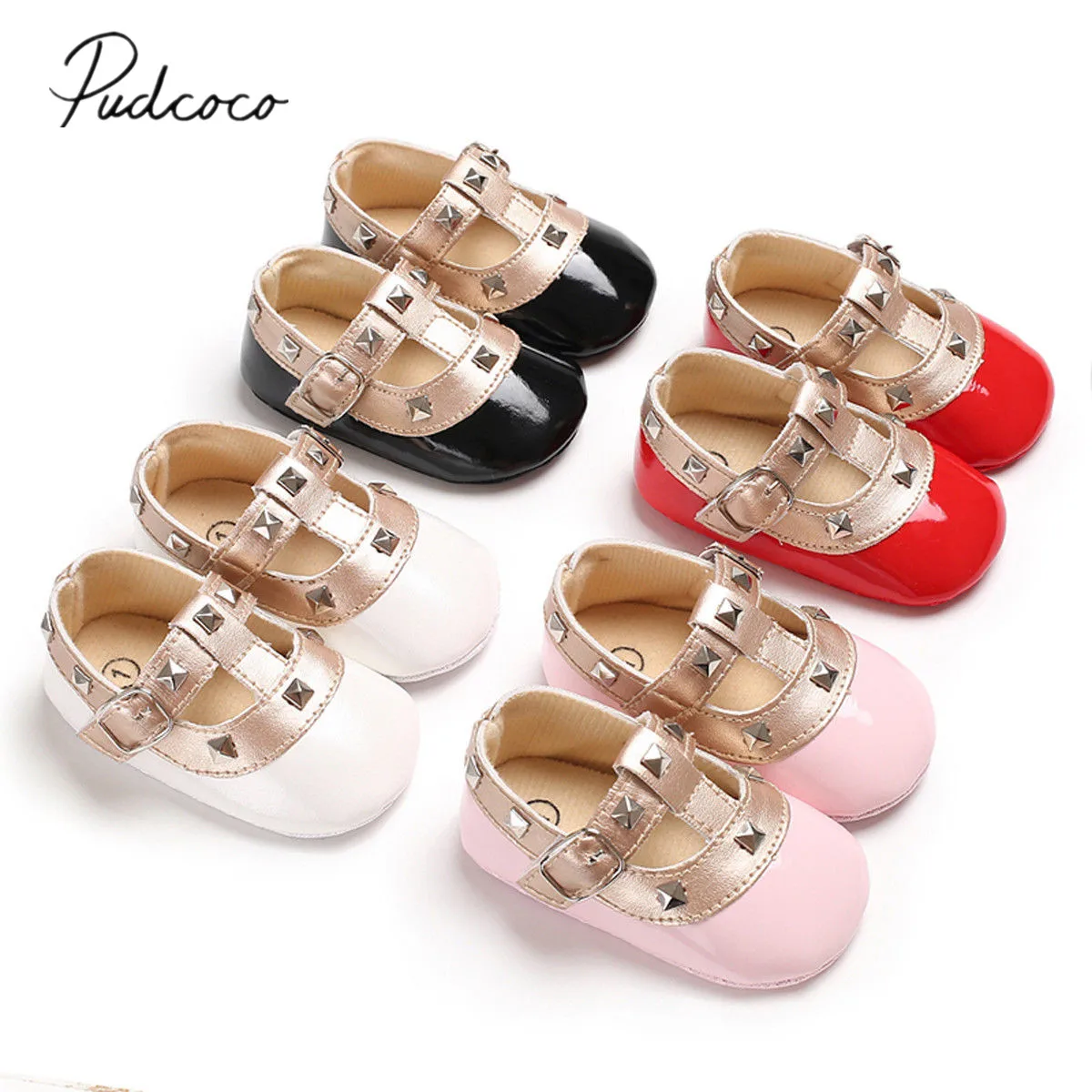 Туфли принцессы для новорожденных девочек, однотонные кожаные туфли...