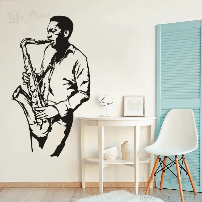 Музыкальный инструмент саксофон наклейки на стену Джаз клуб музыкальный проигрыватель виниловые наклейки на стены Музыкальный клуб украшения саксофон фрески