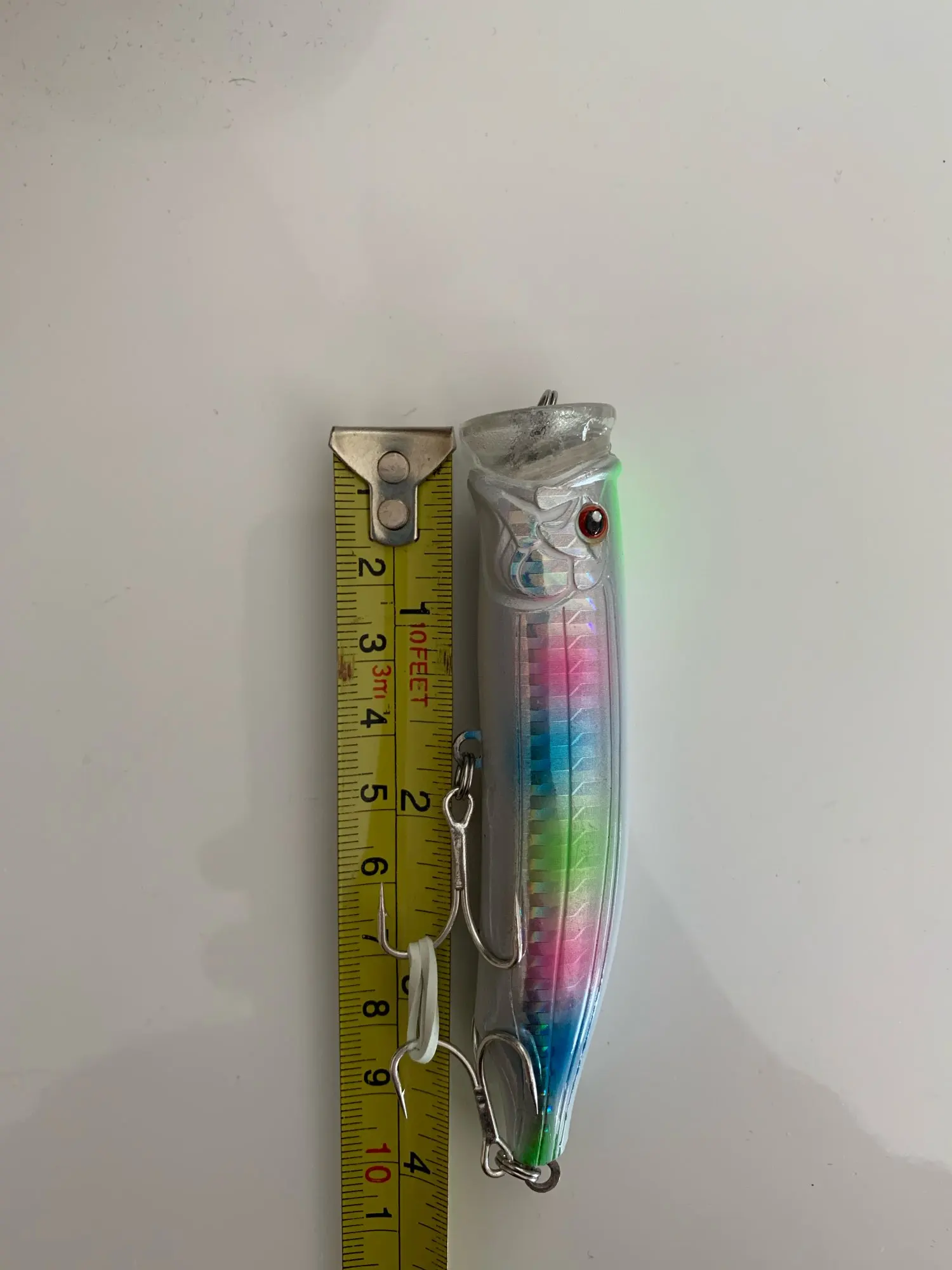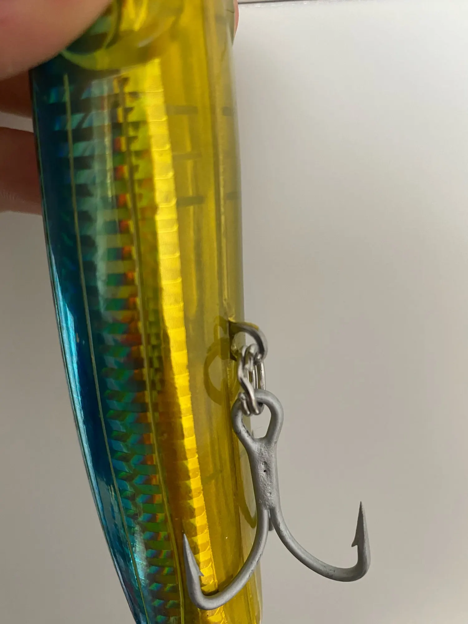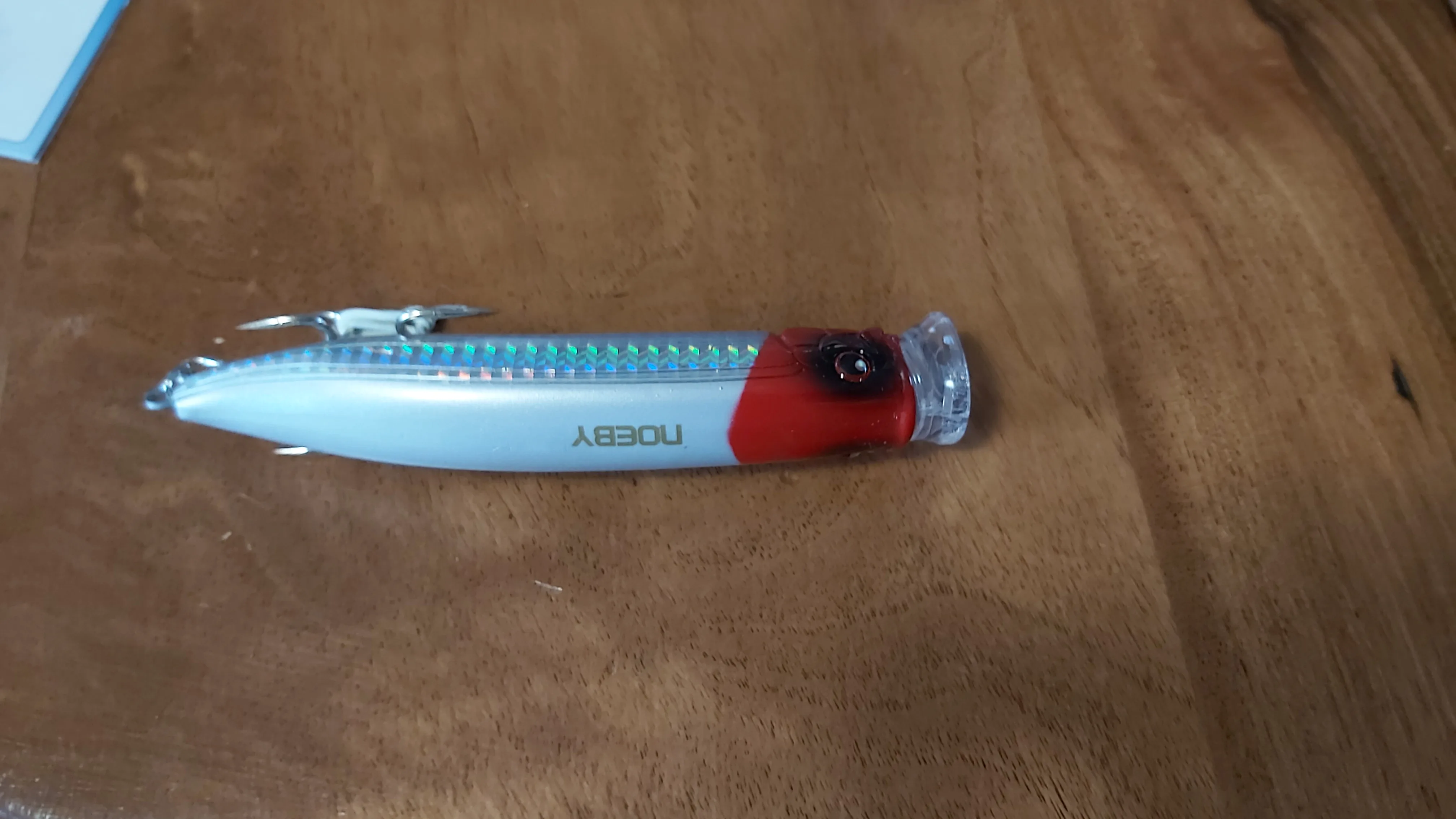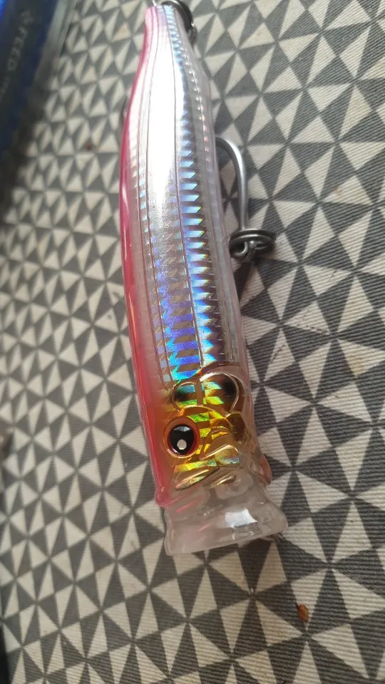 Вес 59 граммов с крючками. Кольцо в центре декорации не очень хорошо запечатано и выглядит не очень хорошо. Учитывая, что это приманка для большой/мощной рыбы. Я не знаю, что будет работать. Я надеюсь, что не упустите хороший шанс сломать эту штуку. Мы увидим вовремя