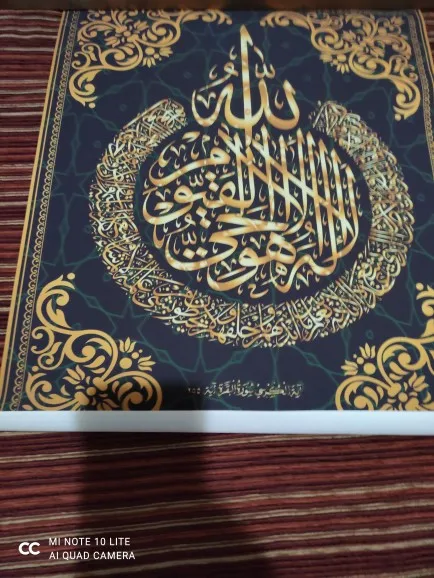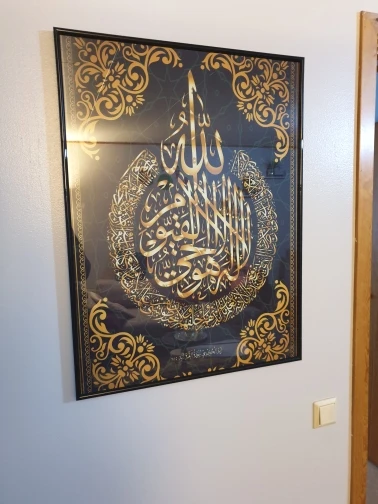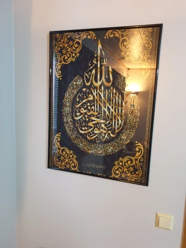 Изображение (Surat al-Kursi) 60x90 красивая печать и высокая точность продукта, очень хорошо ламинировано, Я не нашли рамку, подходящую для измерения изображения, я купил рамку 60х80, я думаю, что это очень продавец дал ему 100%