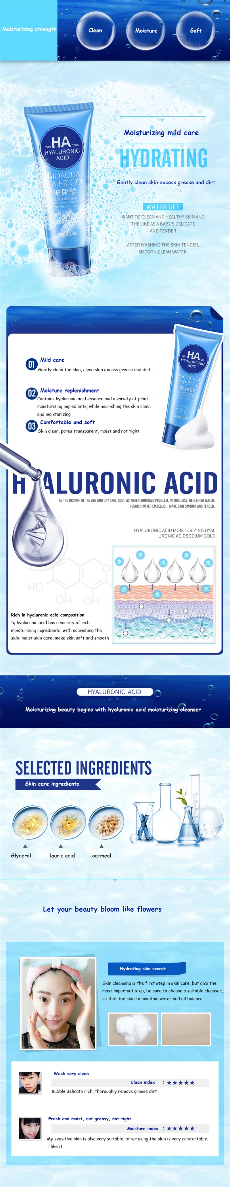 Бренд BIOAQUA, гиалуроновая кислота, очищающее средство для лица, увлажняющее глубокое очищение, отбеливание, увлажнение, уход за кожей лица