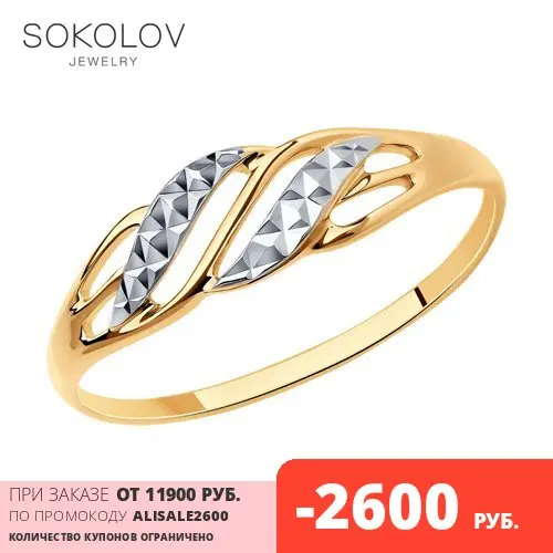 Золотое кольцо с алмазными гранями SOKOLOV, 585, Женское, Оригинальная продукция
