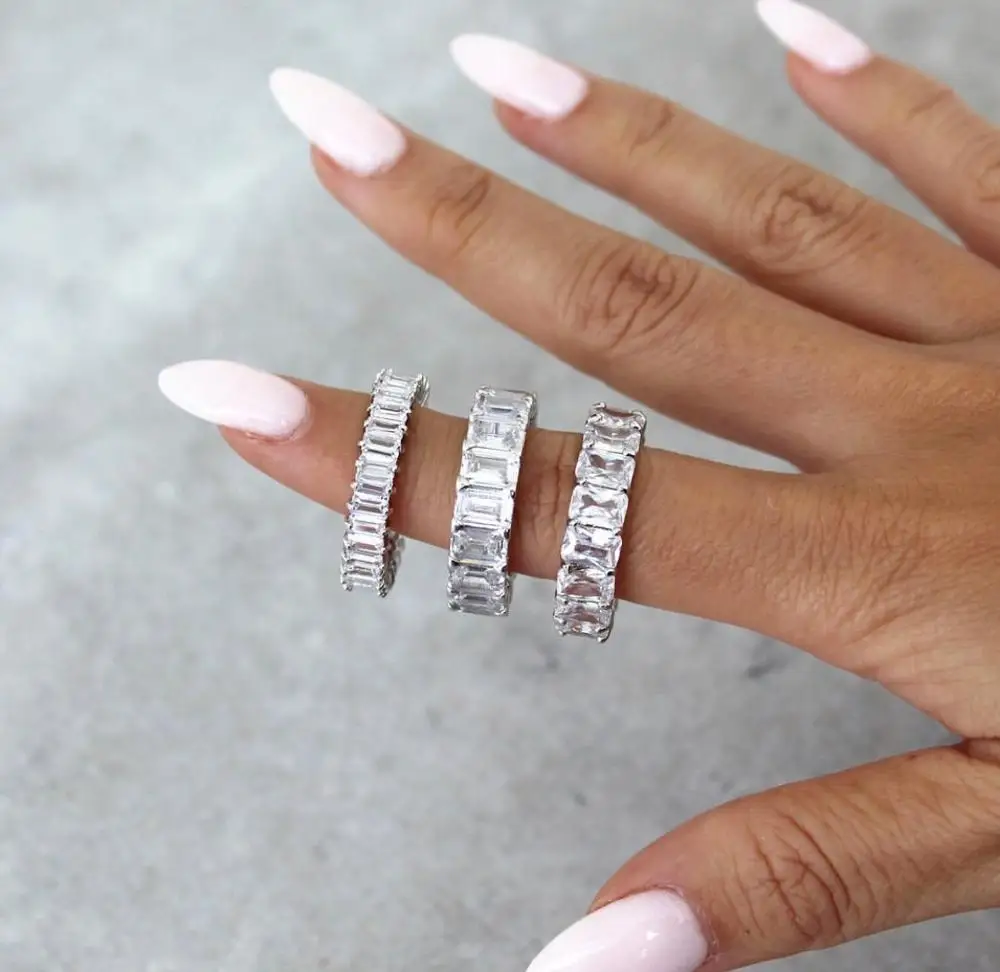 Кольцо с изумрудной огранкой Forever, обручальное кольцо из стерлин...