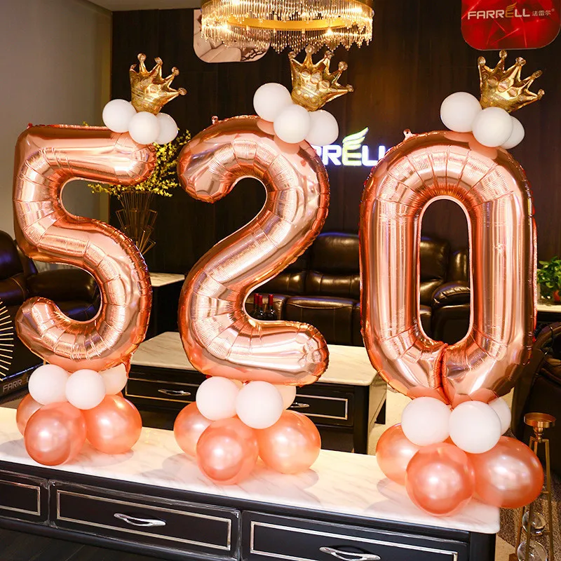 Воздушный шар 1, 2, 3, 4, 5, 6, 7, 8, 9, роза, цифра золотые шары из фольги в виде цифр, баллон гелия, свадебное украшение, день рождения