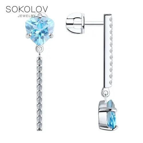 Серьги SOKOLOV из серебра с топазами и фианитами, Серебро, 925, Жен...