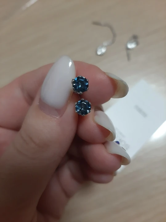 Заказ до Омска дошёл за 6 дней, на сообщения продавец не ответил, хотя статус об отправке был быстро поставлен. Товар хорошего качества, камни смотрятся ярко, но, если присмотреться, камни немного разные- это от огранки зависит и часто встречается у гвоздиков от Соколов (у меня их несколько пар, в половине вот так, на разных ушах не будет особо заметно) . Неужели нельзя сделать, чтобы камни одинаково выглядели? Видимо, это вариант нормы для них. Эта модель пуссет с 6 крапанами самая удачная, на мой взгляд- выглядит изящно, серьги смотрятся дорого, интересно. У меня с иолитом такие же (на фото они), выглядят круто- не смогла мимо пройти! И эти не хуже, Лондон- топазы ярко сверкают, а у иолитов глубокий сине- фиалковый цвет. Товар и продавца рекомендую, на Алиэкспресс их продукцию второй раз заказываю, а так обычно в магазинах всё покупала. Успехов всем и счастья в новом году!