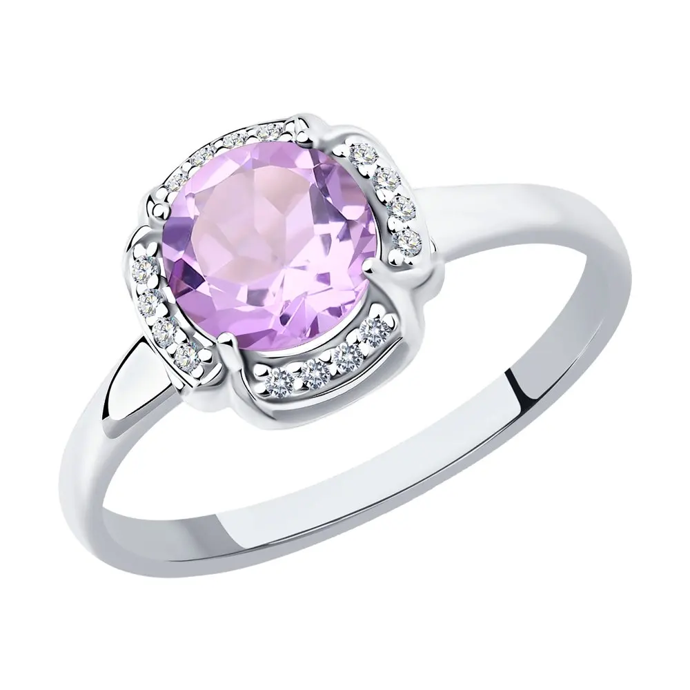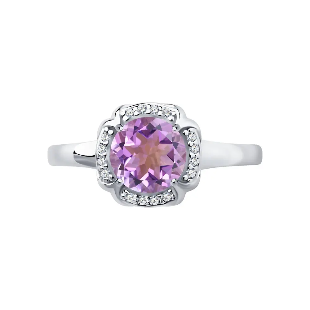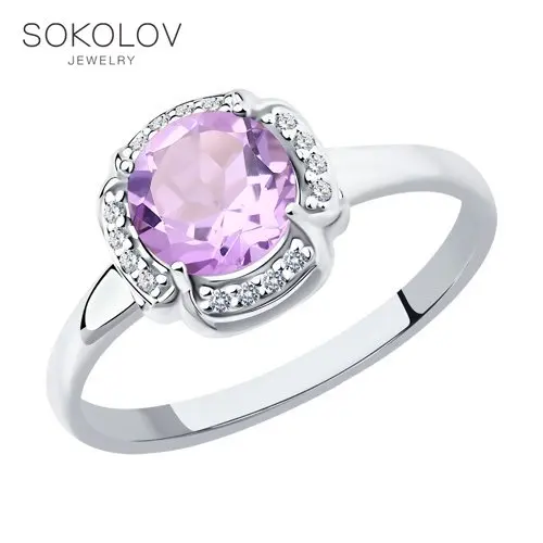 Кольцо SOKOLOV из серебра с аметистом и фианитами, Серебро, 925, Женское, Оригинальная продукция