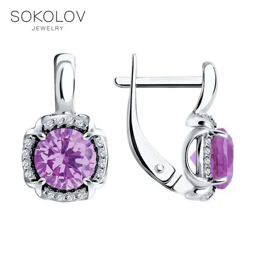 Серьги SOKOLOV из серебра с аметистами и фианитами, Серебро, 925, Женские, Серьги 2022 тренд, Оригинальная продукция