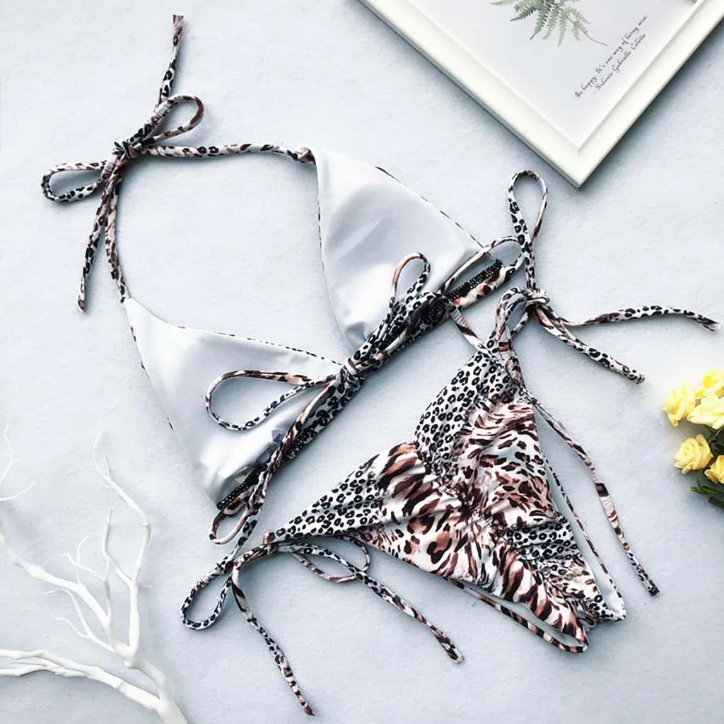 Леопардовое бикини с лямкой на шее, 2021, женский купальник, женский купальный костюм, летняя пляжная одежда, комплект микро бикини # T