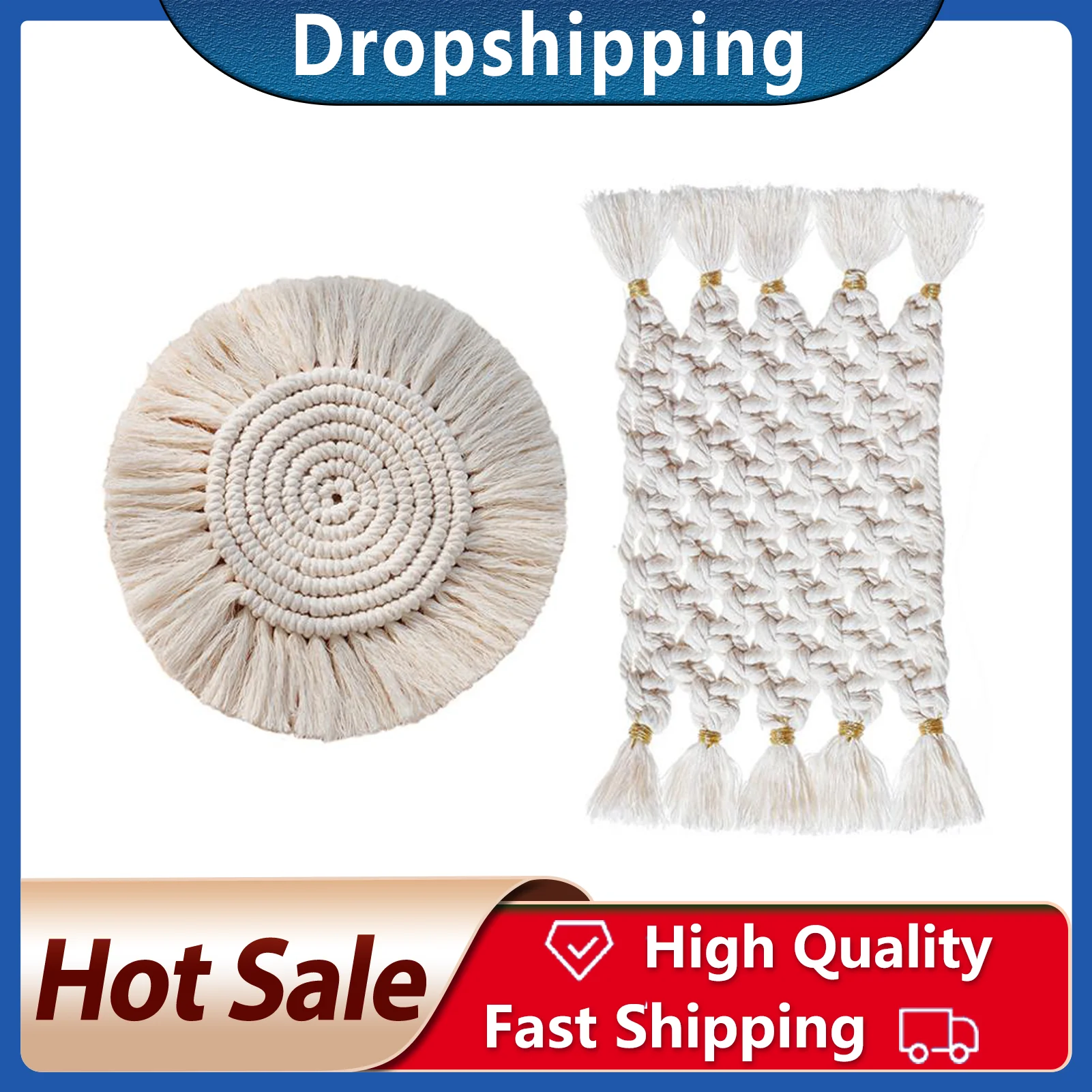 Коврик под чашку макраме из чистого хлопка ручной работы, Богемия, ...