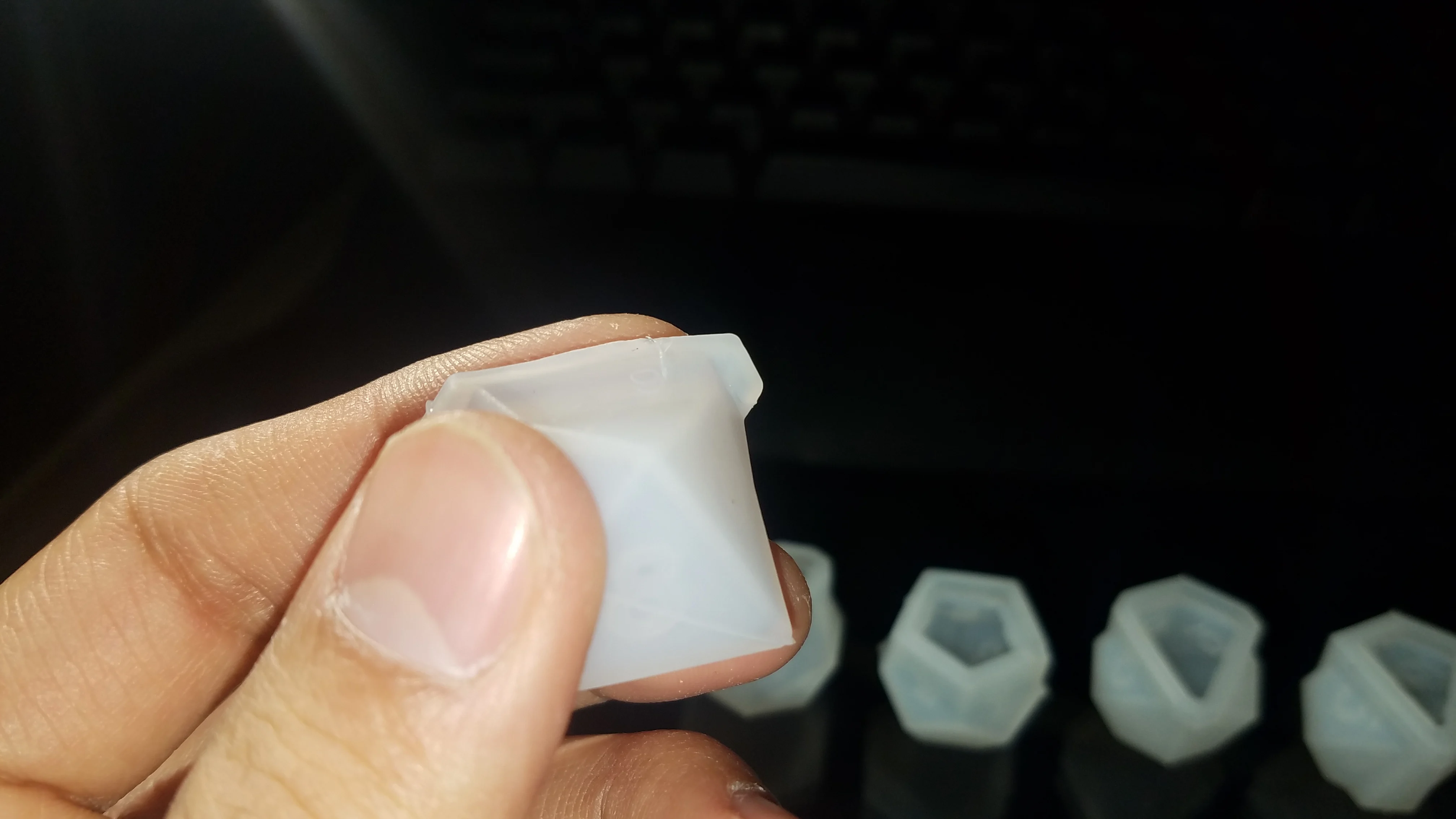 Наличие небольшой проблемы с использованием этих форм, не получая пузырьков воздуха от попадания смолы в верхнюю часть, но будет работать и было бы лучше для опытных людей