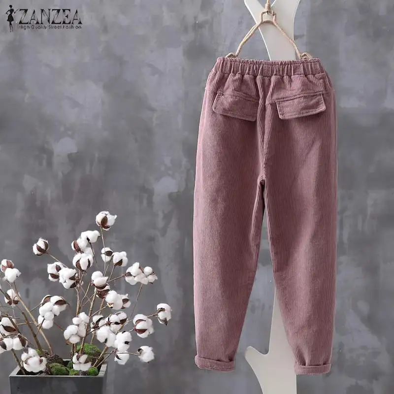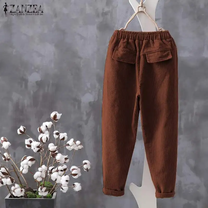 Женские вельветовые шаровары, длинные брюки-Палаццо с эластичной талией, однотонный короткий, повседневные, большого размера, 2021