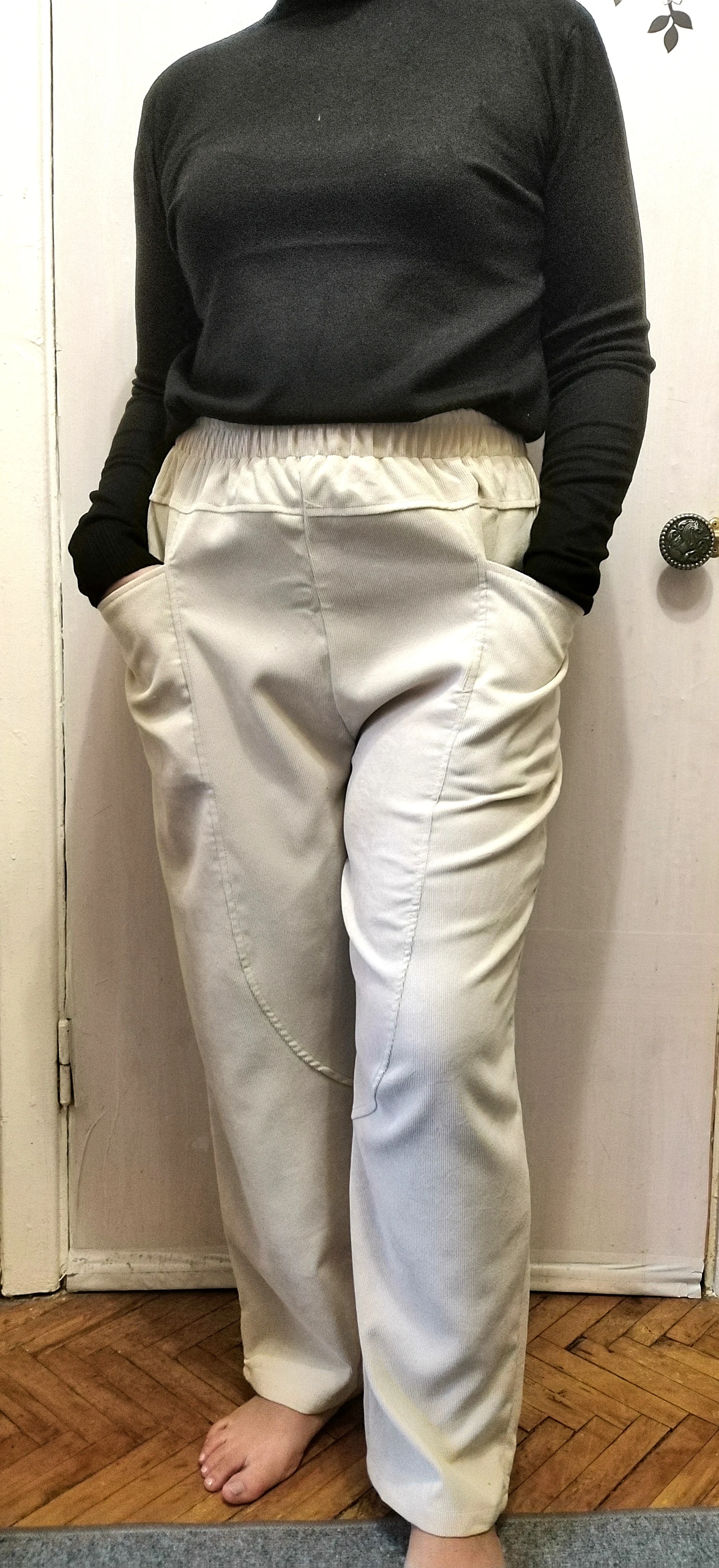 До Москвы полтора месяца. Аккуратный пошив, приятная летняя легкая ткань, хотя на фото продавца штаны выглядят более плотными. Размер выбирала по отзывам, а зря, он полностью соответствует описанию товара. На свои бёдра 120 взяла 3XL, штаны страшно велики - я намеряла полуобхват бёдер 67 (это 134 см). Покрой таков, что ушить проблематично, на животе и попе огромный пузырь. Кроме того, на фото продавца штанины зауживаются к низу, подворот выглядит естественно и современно. На самом деле штанины прямые, по низу ширина 23 см (полный объём 46 см). Если подвернуть такую ширину, то вид как у Чарли Чаплина. Жаль, что нет легкого возврата, это мне урок на будущее - не покупать невозвратные вещи. Носить не буду.